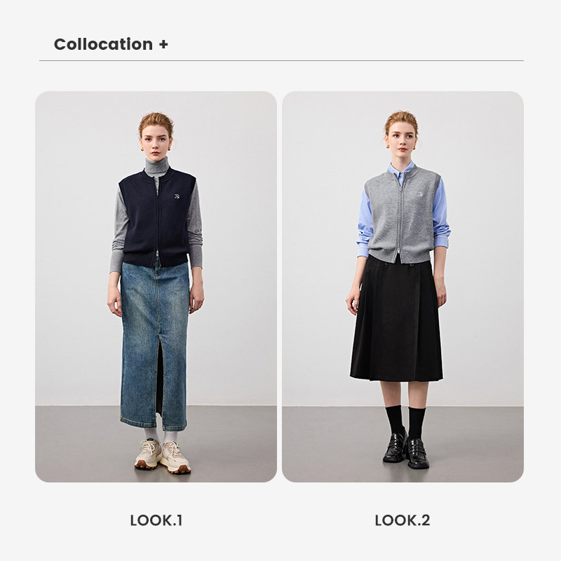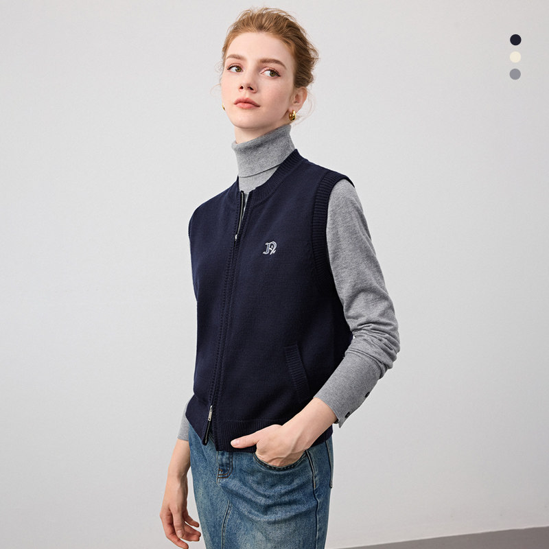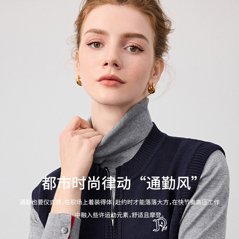 Navigare意大利小帆船纯羊毛马甲女秋冬无袖开衫通勤百搭毛衣背心