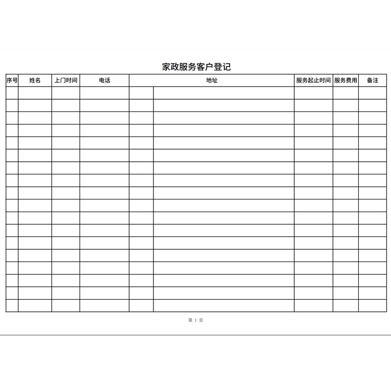 家政服务登记本保洁公司客户信息表档案记录本家政清洁服务登记表