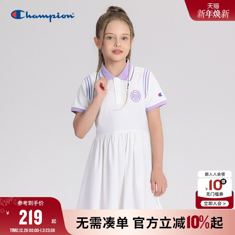 Champion冠军女童装25夏季新款潮流经典运动网球风polo柔软连衣裙