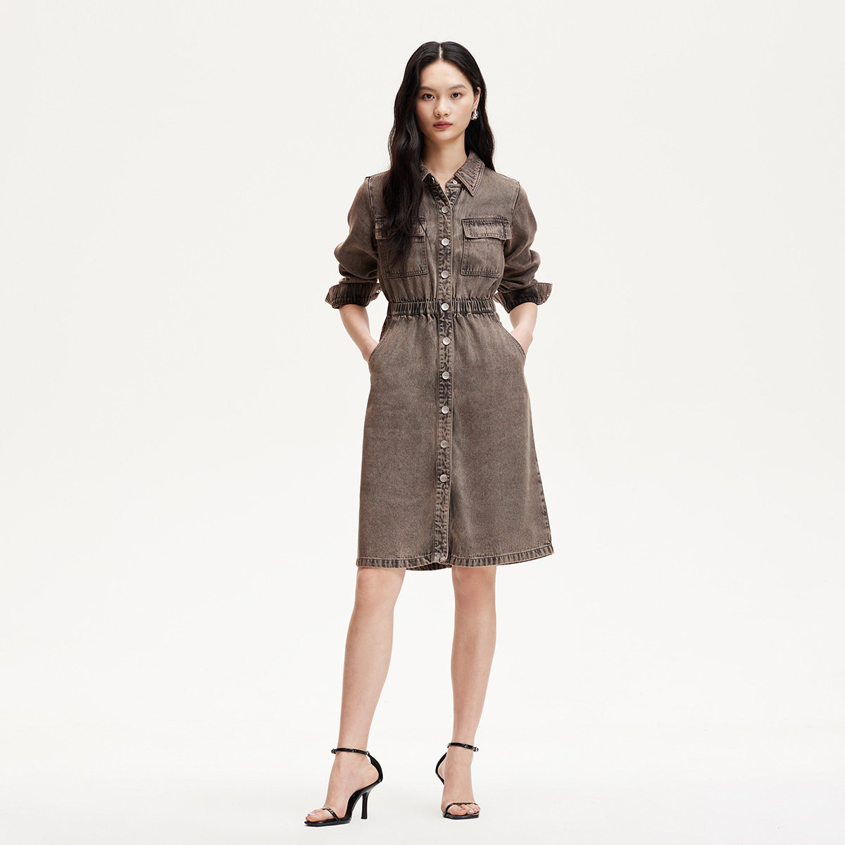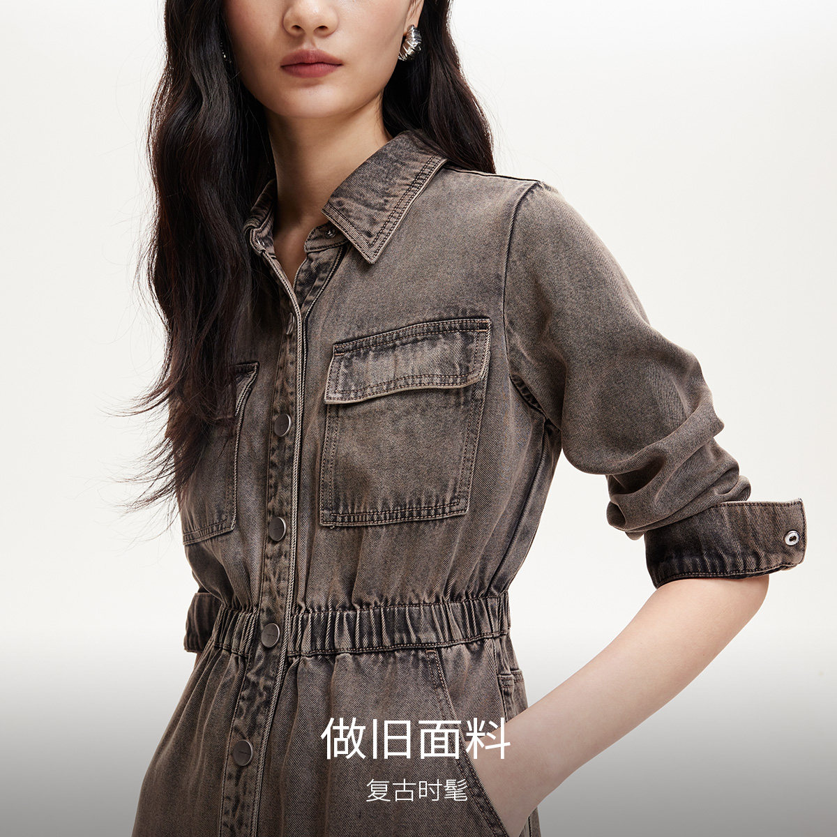 Vero Moda连衣裙25秋季莱赛尔天丝收腰做旧中长裙牛仔风325142011