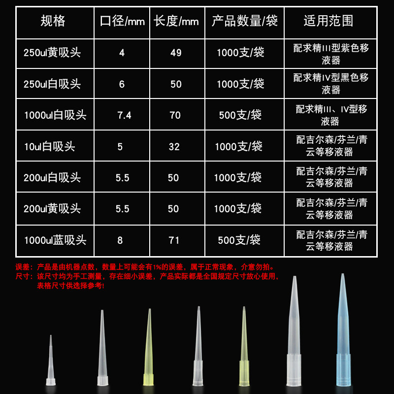 江苏新康黄色移液器吸头通用吸头5.5*50/250μm移液器枪头枪嘴