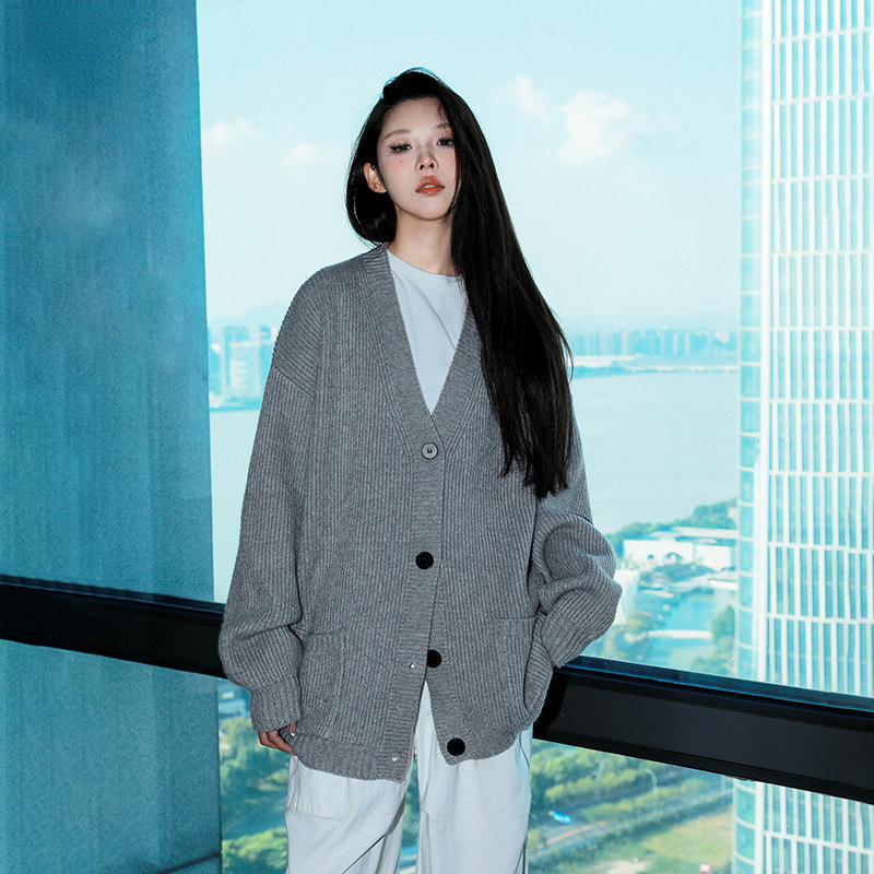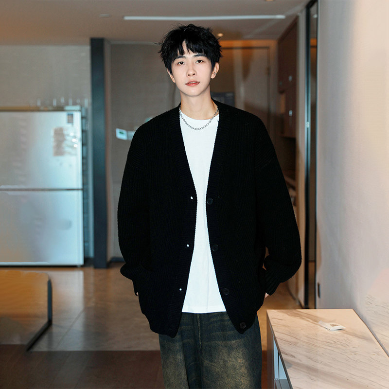 NEVERNEED麻花纯色毛衣开衫男女秋冬美式潮牌肌理感情侣针织外套