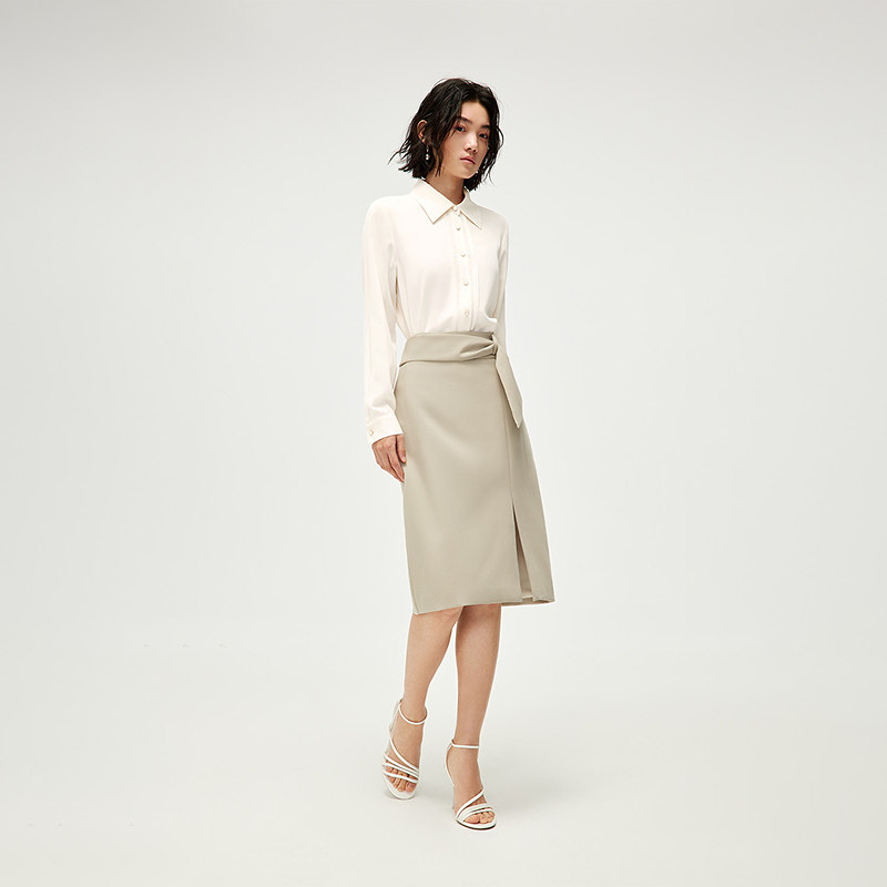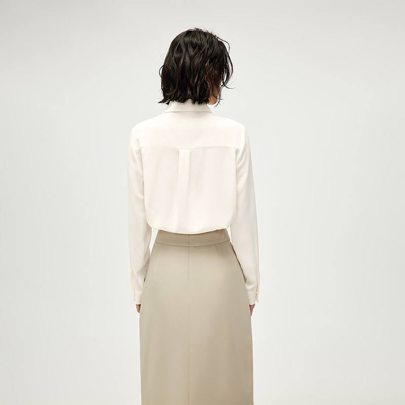 HLA/海澜之家长袖时尚微弹衬衫2025春夏新款休闲宽松翻领衬衣女装