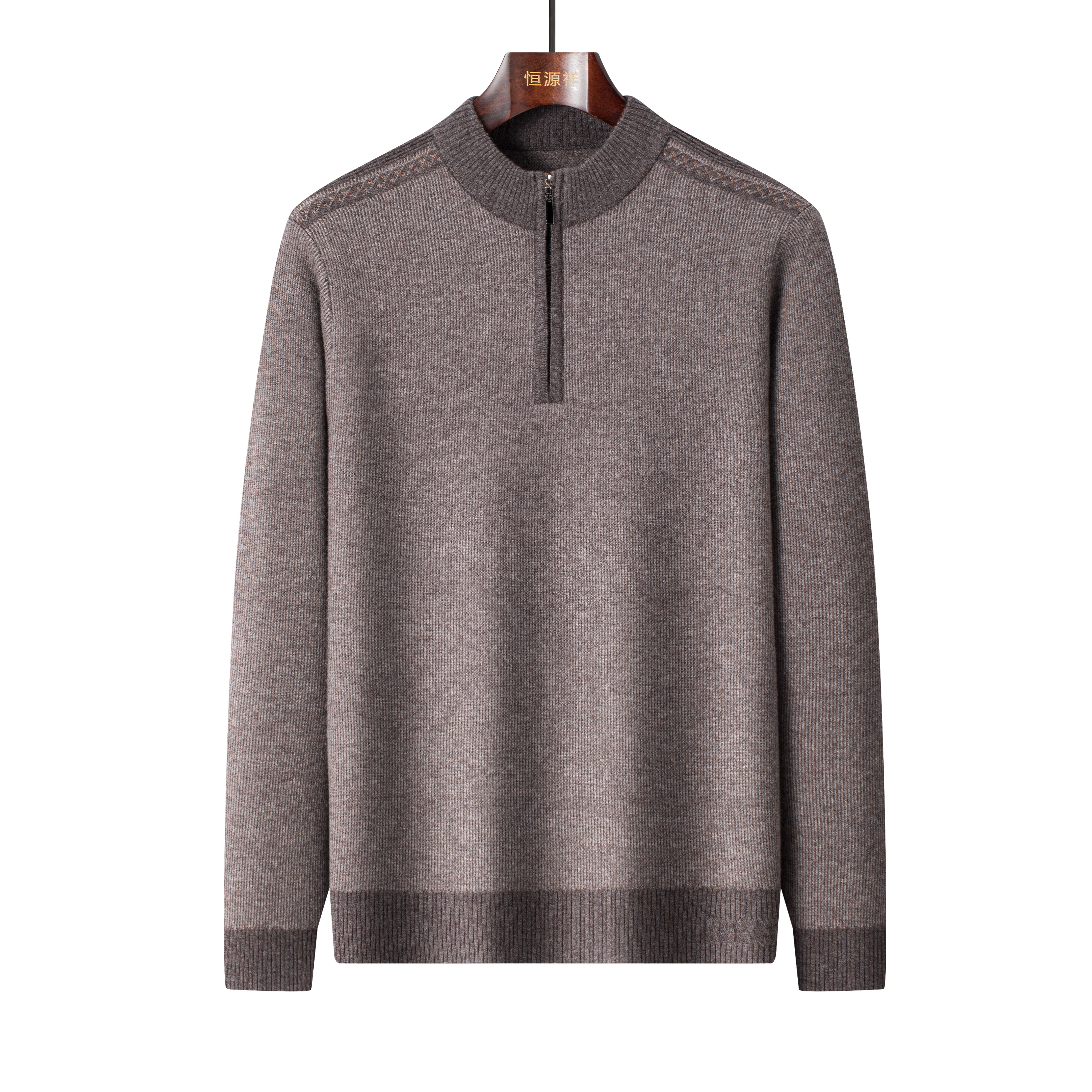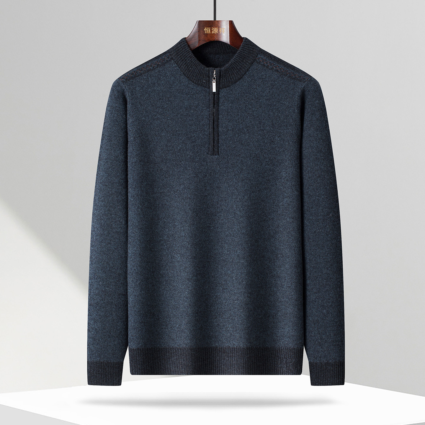 恒源祥羊毛衫100纯羊毛男装针织衫拉链中年冬季爸爸毛衣加厚内搭