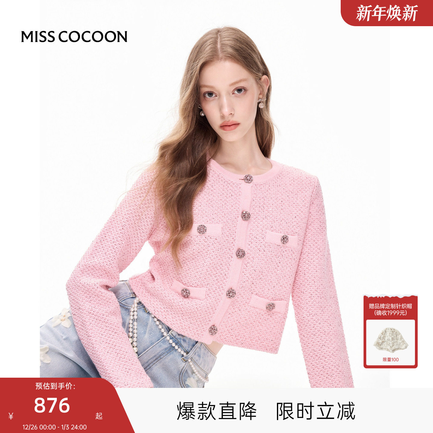 MISSCOCOON可可尼针织开衫女2025秋季新款小香风绵羊毛毛衣短外套