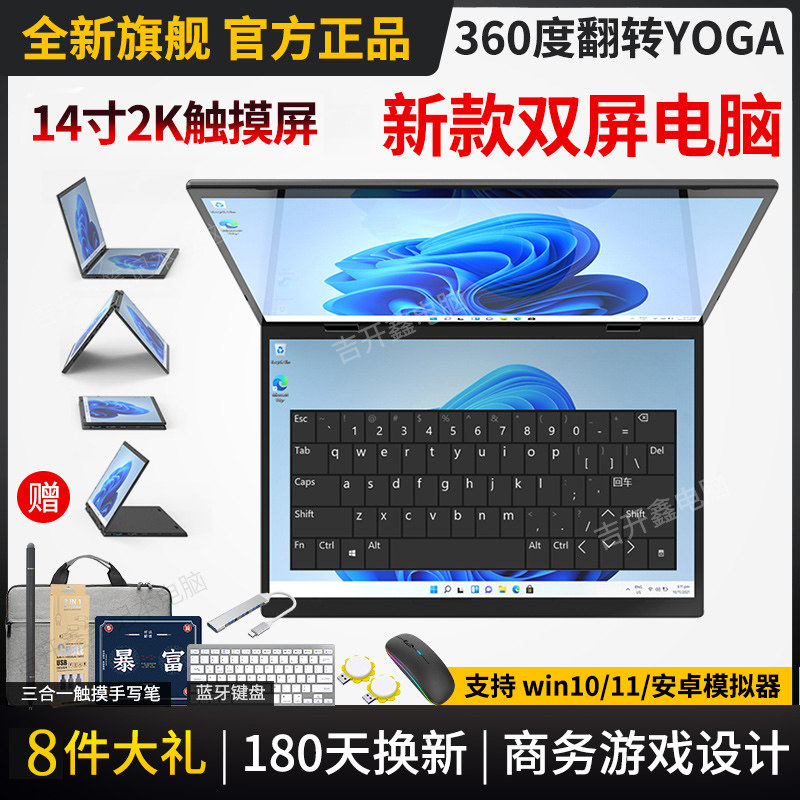 双14英寸触摸屏10寸掌上电脑游戏本双屏笔记本电脑炒股多屏办公
