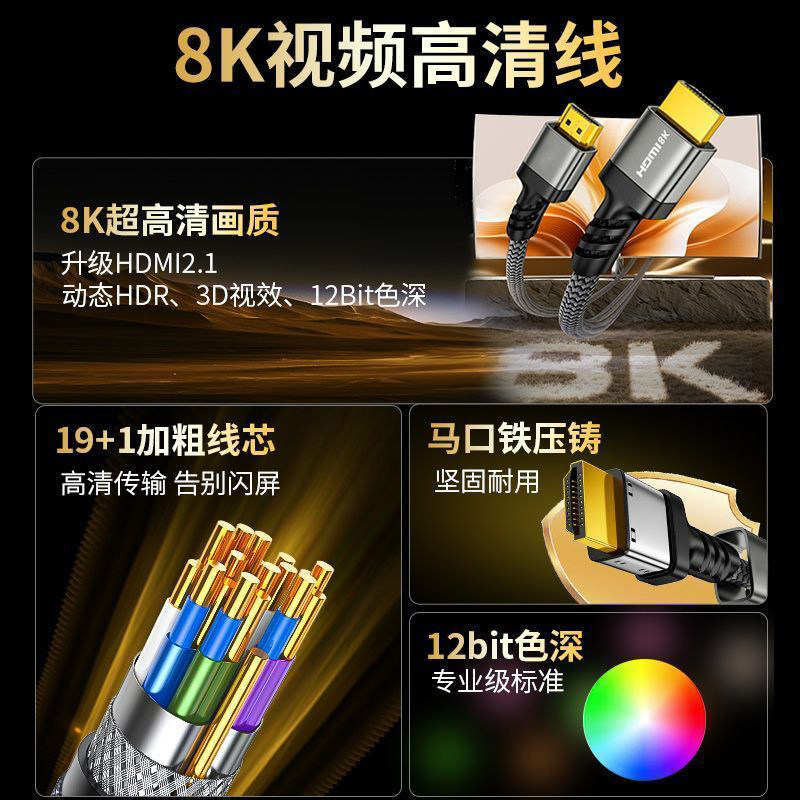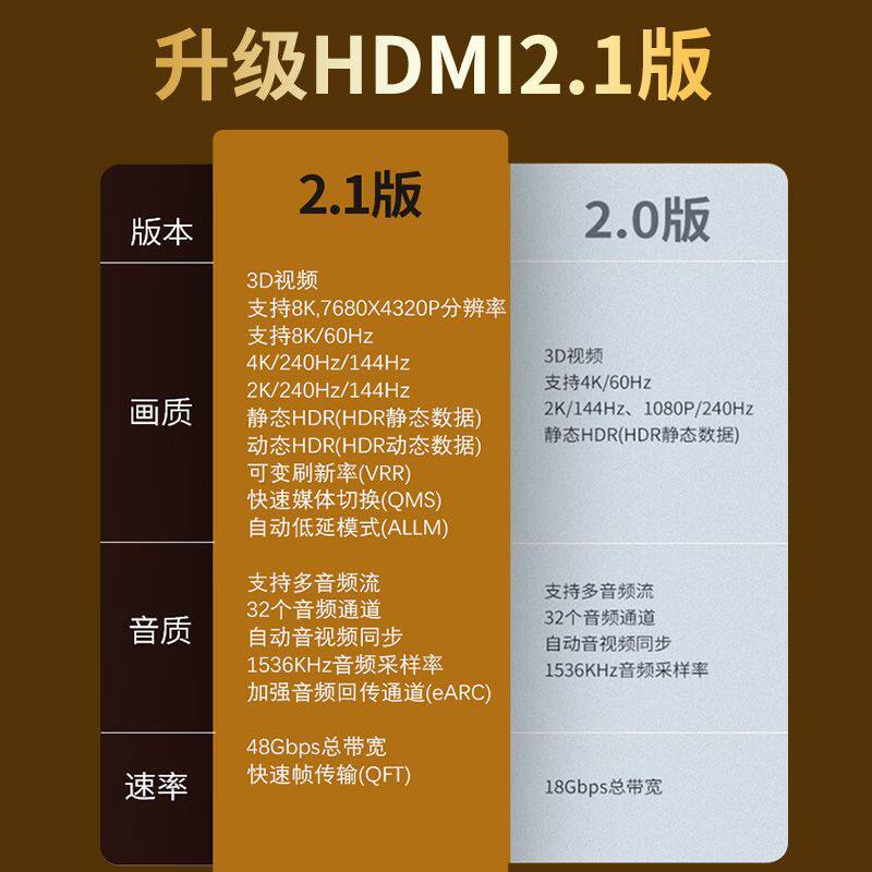 hdmi线高清线2.1连接8k电脑笔记本投影仪加延长4k电视显示器240hz