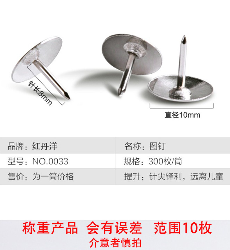红丹洋镀镍桶装图钉强力无痕墙纸按钉家用墙布照片墙防腐锈装饰钉