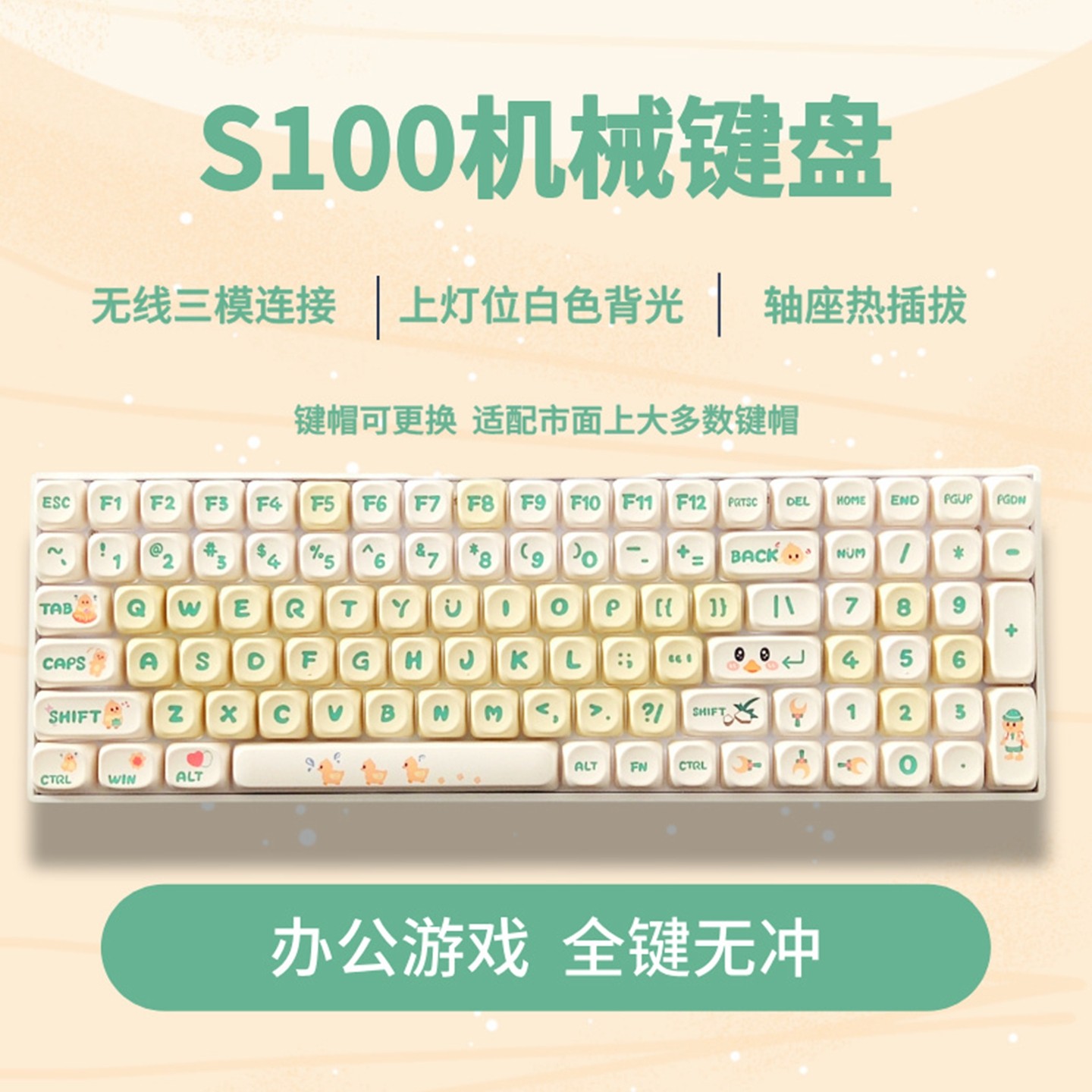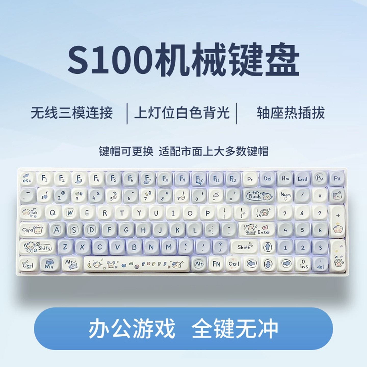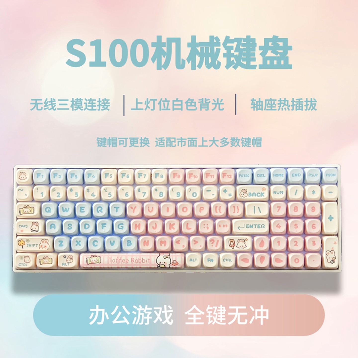 客制化100键机械键盘三模热插拔2.4G无线蓝牙白光套件静音PBT键帽