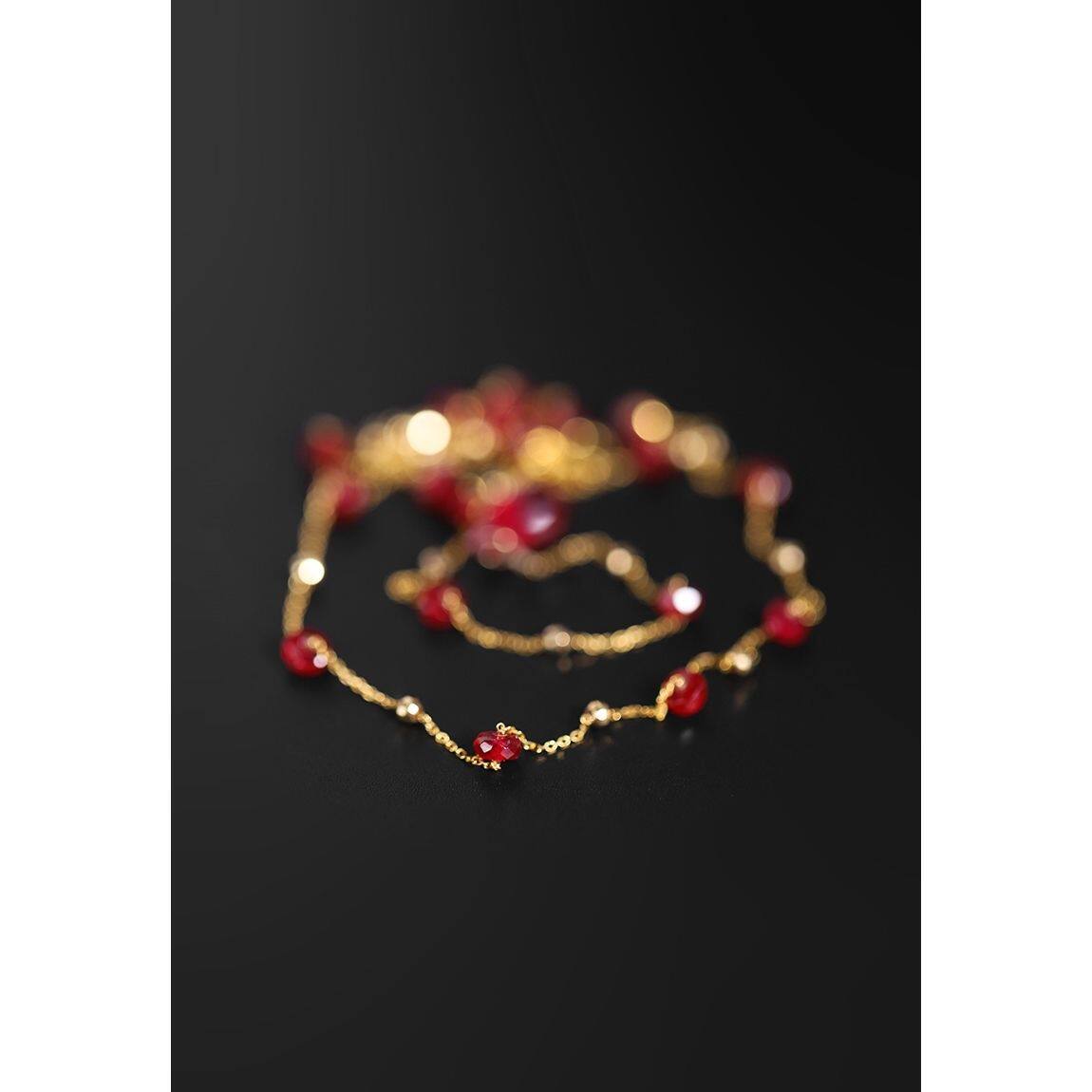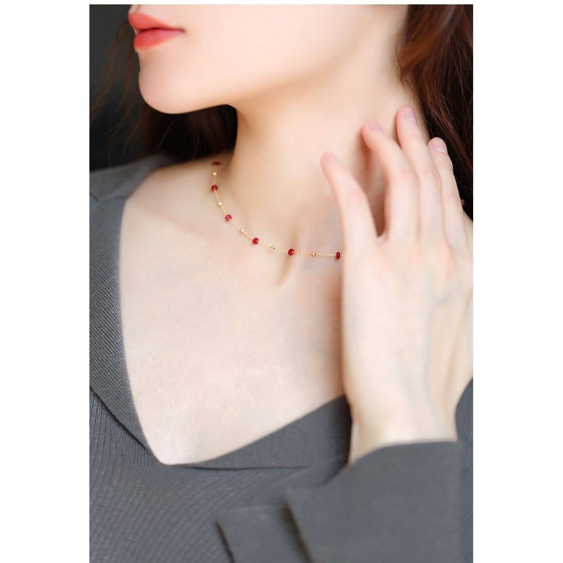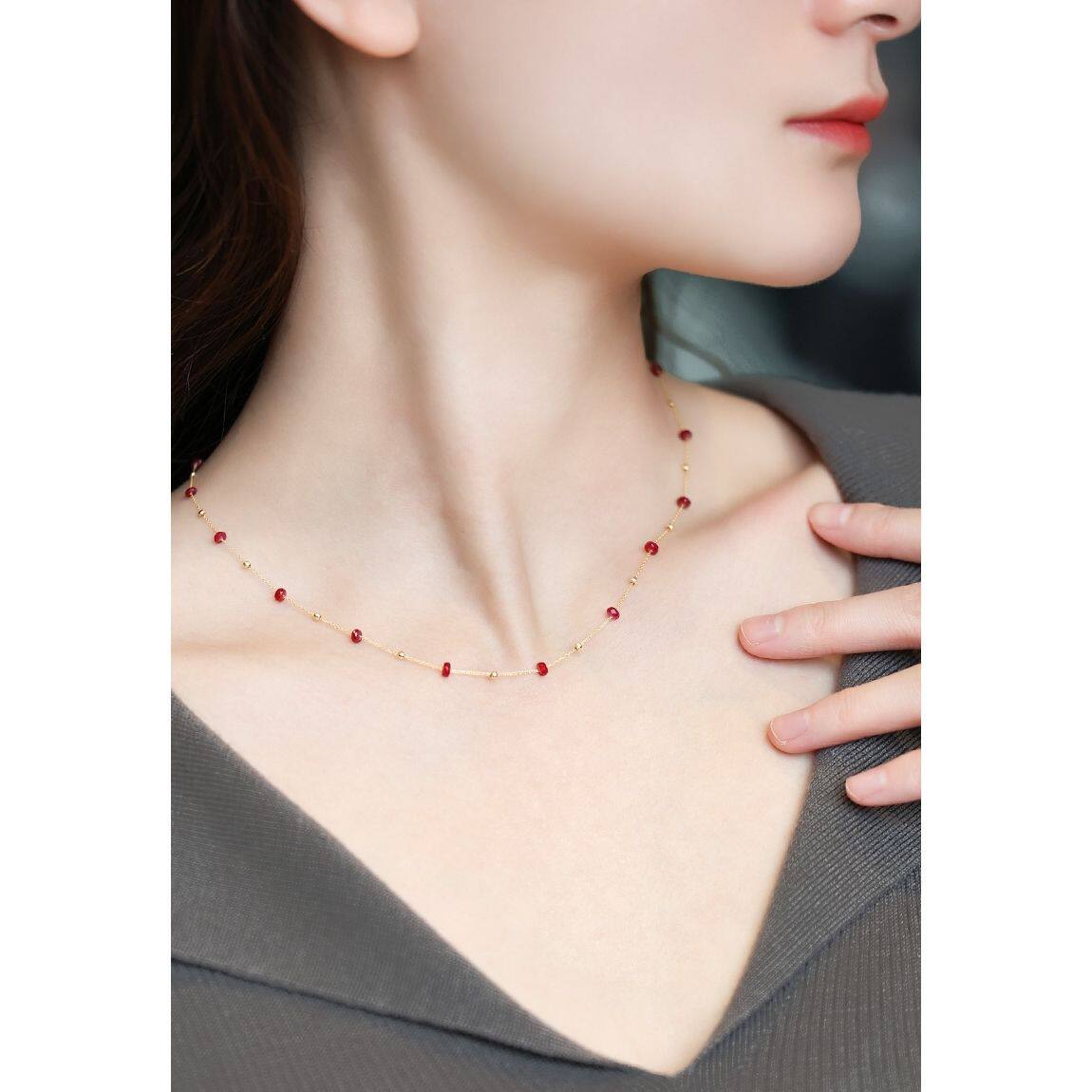 流苏满天星人造鸽血红宝项链女镀18K金色优雅锁骨链彩宝吊坠送礼