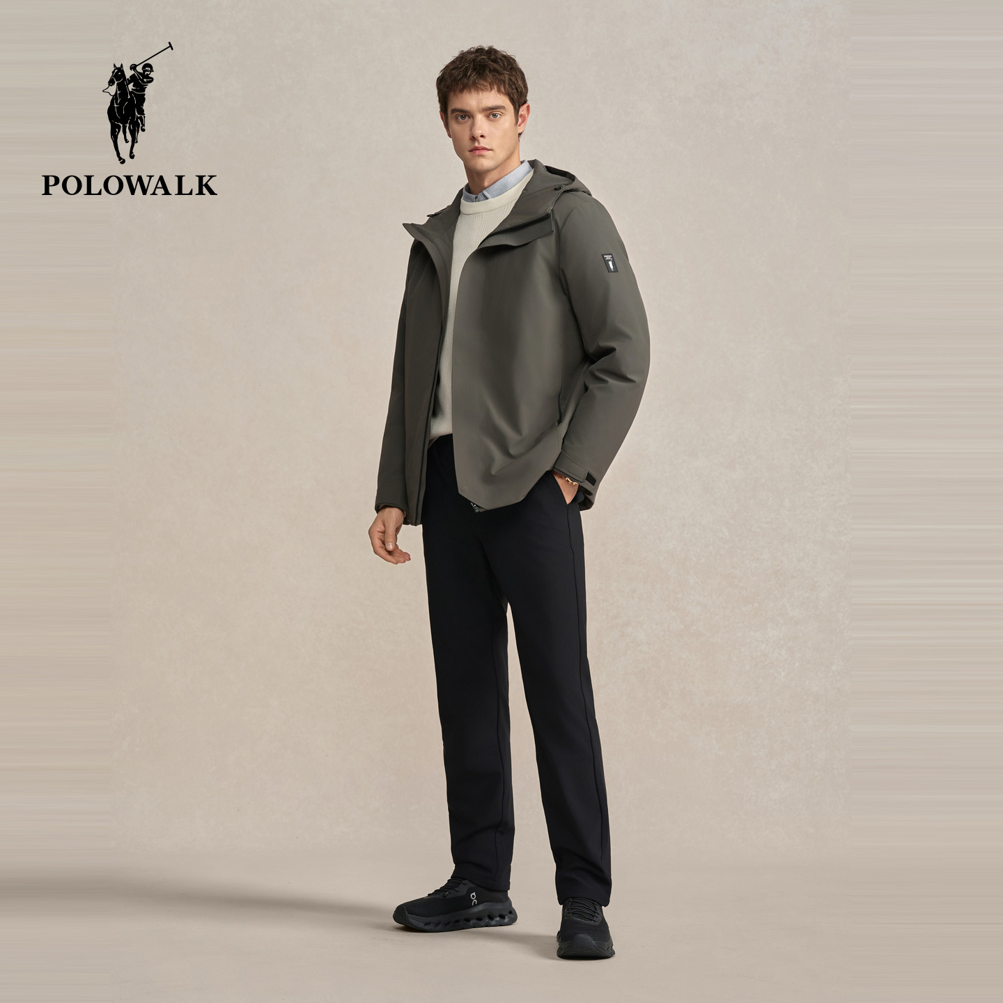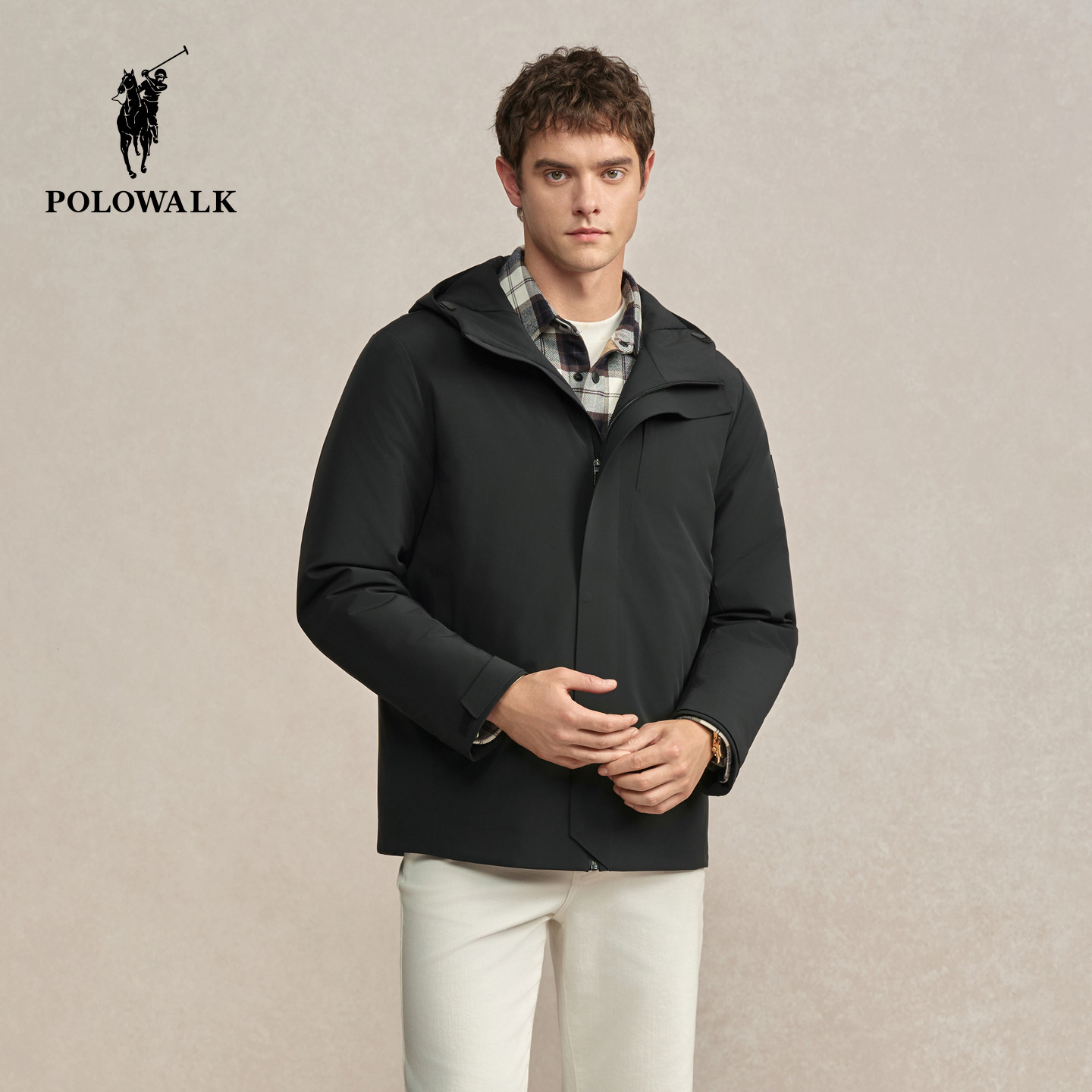 POLOWALK男式羽绒服2025冬季新品连帽鹅绒轻薄短款商务羽绒服外套