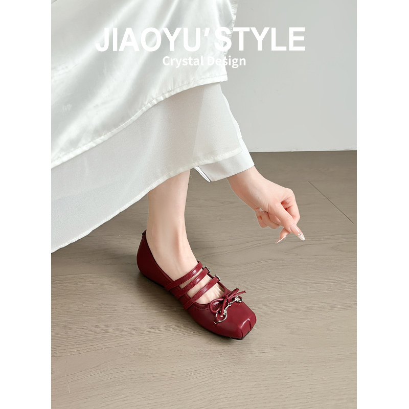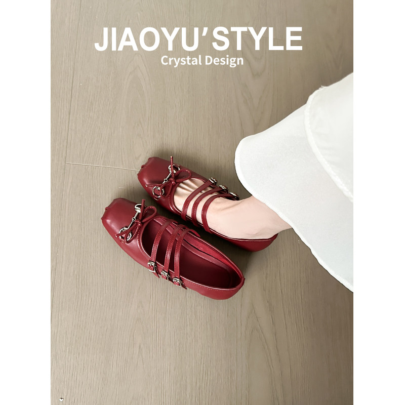 米霏~【羊皮版】红色单鞋女平底法式气质软底芭蕾瓢鞋温柔晚晚鞋