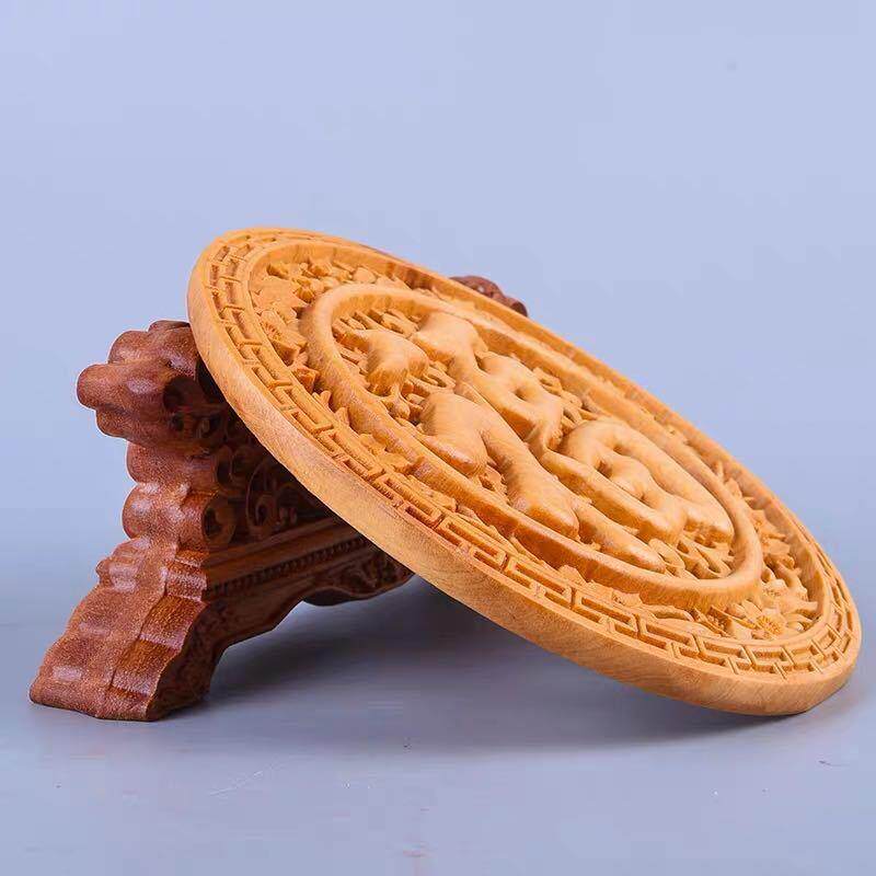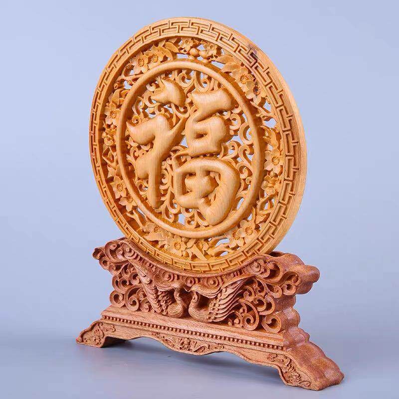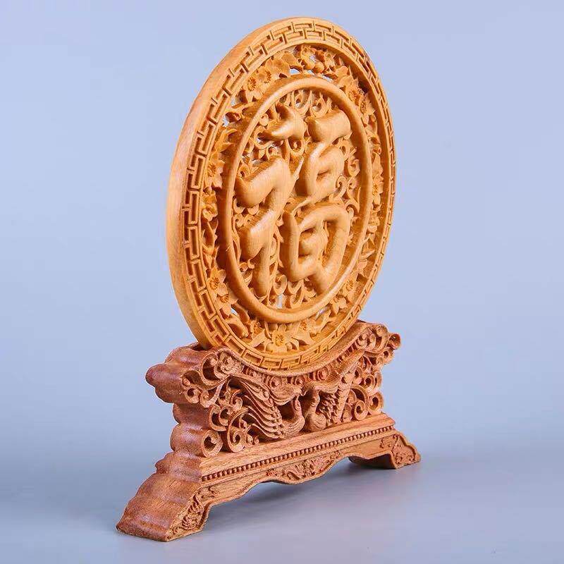 太行崖柏木雕福字圆盘摆件客厅小叶黄杨木实木质商务送礼工艺品