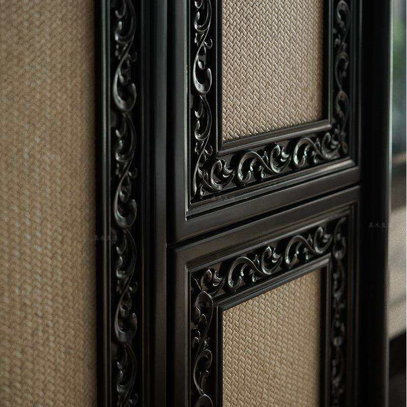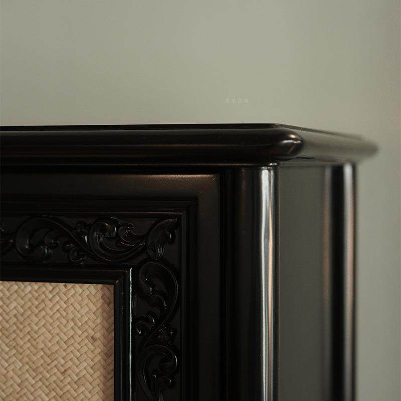 复古实木雕花玄关柜靠墙储物柜黑色电视边柜藤编新中式小户型