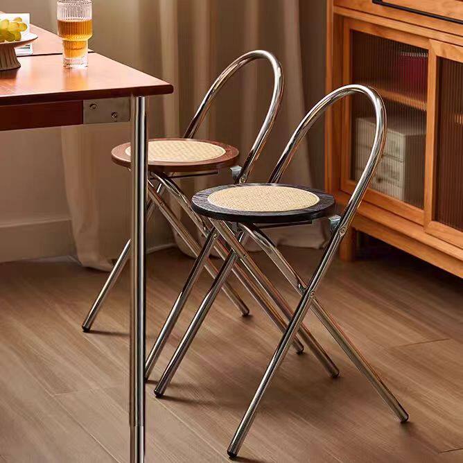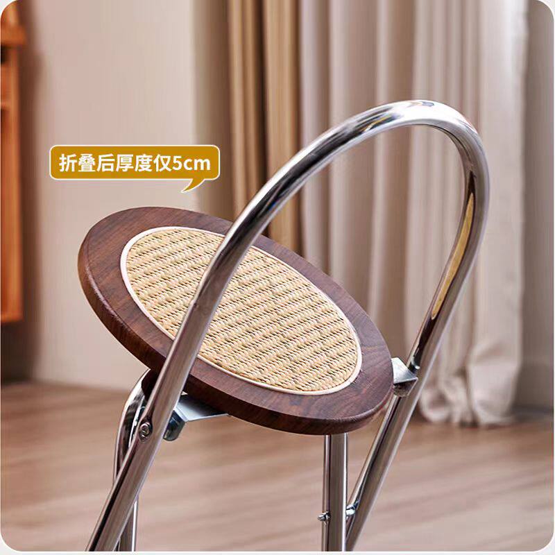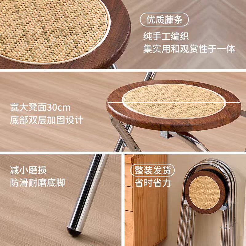 中古折叠餐椅家用阳台休闲侘寂风小户型ins实木凳子复古藤编椅子