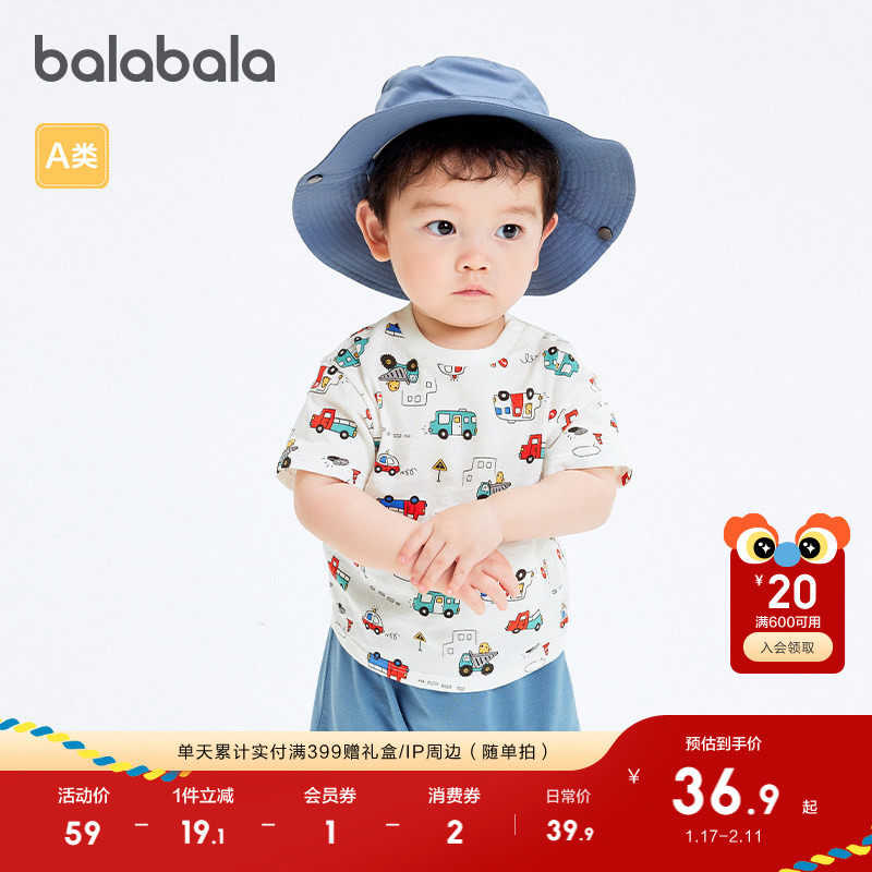 巴拉巴拉婴儿t恤宝宝上衣女童衣服男童短袖2025春夏装全棉萌趣
