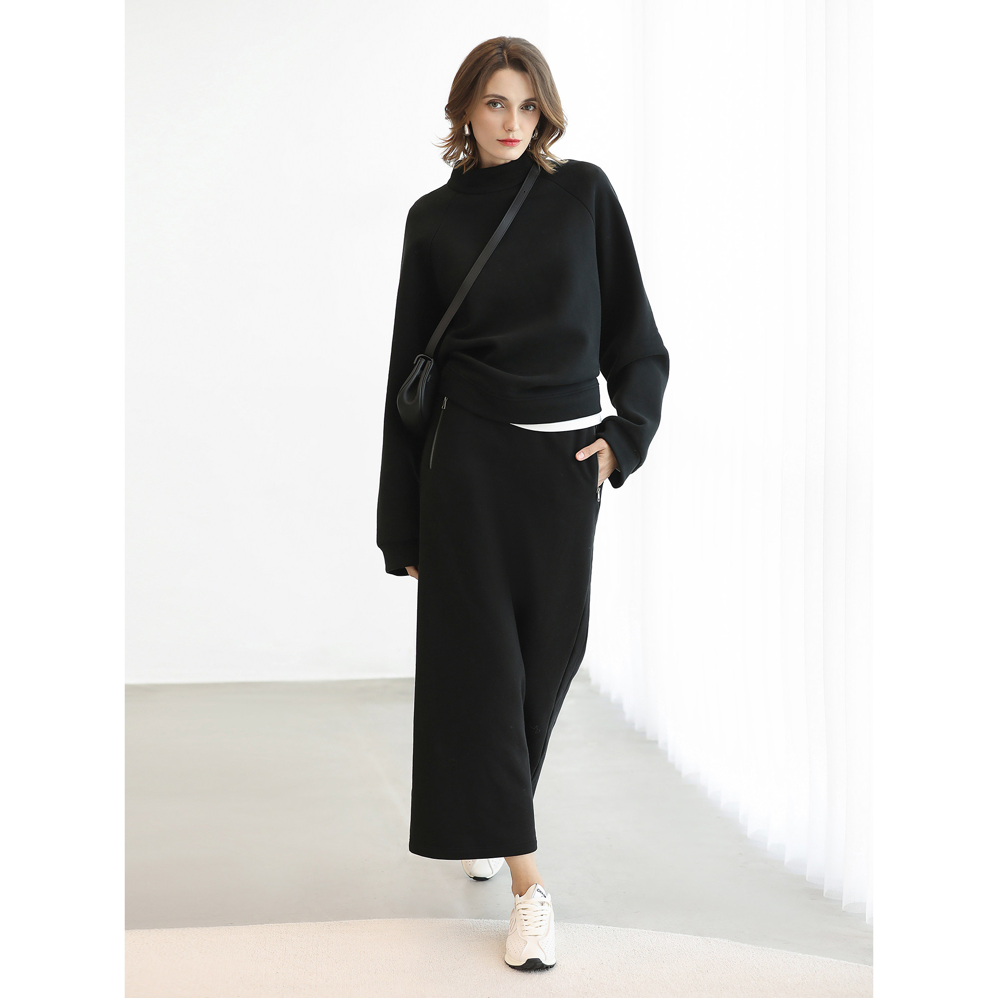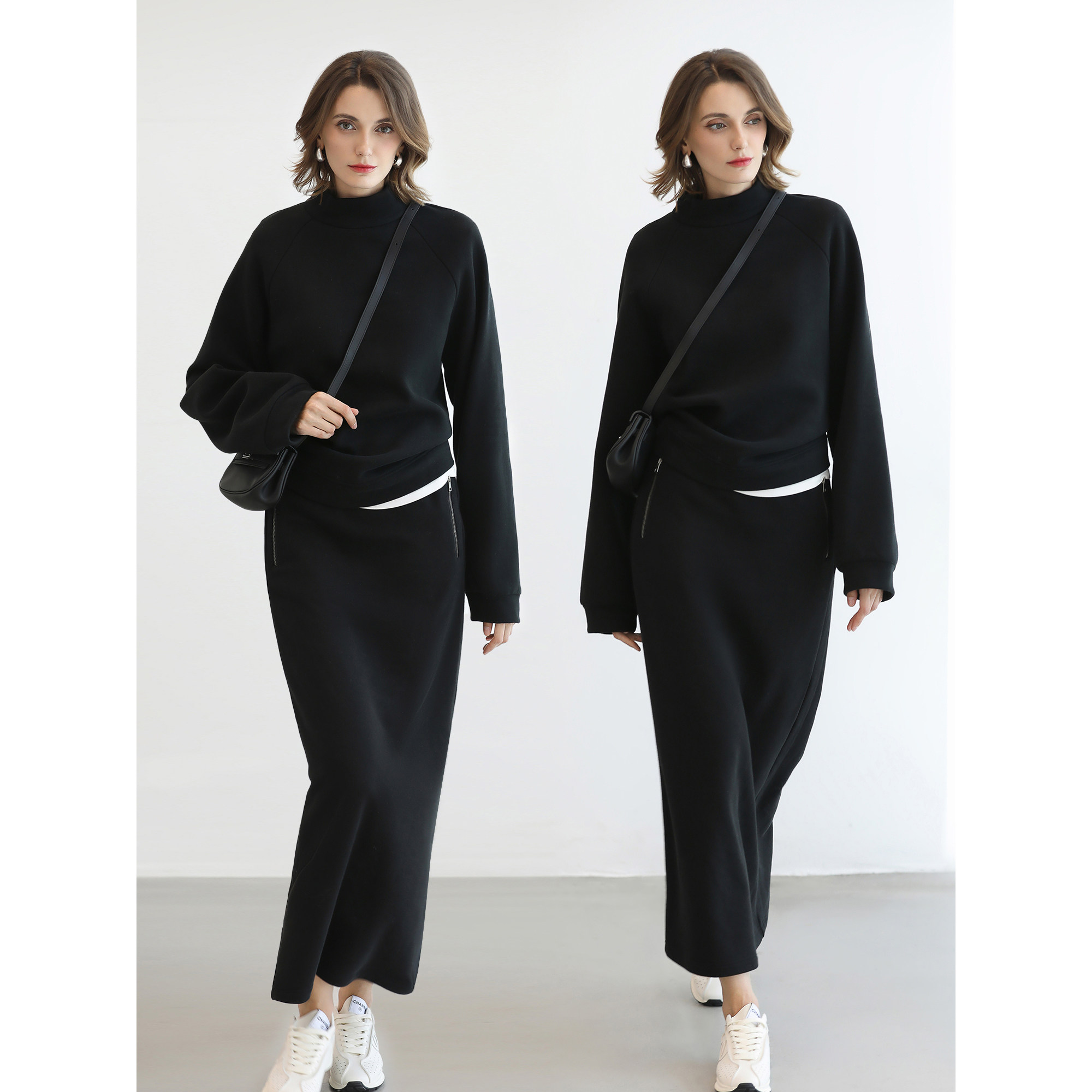SIINSIIN直筒裙加绒2025年新款高腰收腹半身裙女黑色显瘦A字裙tk