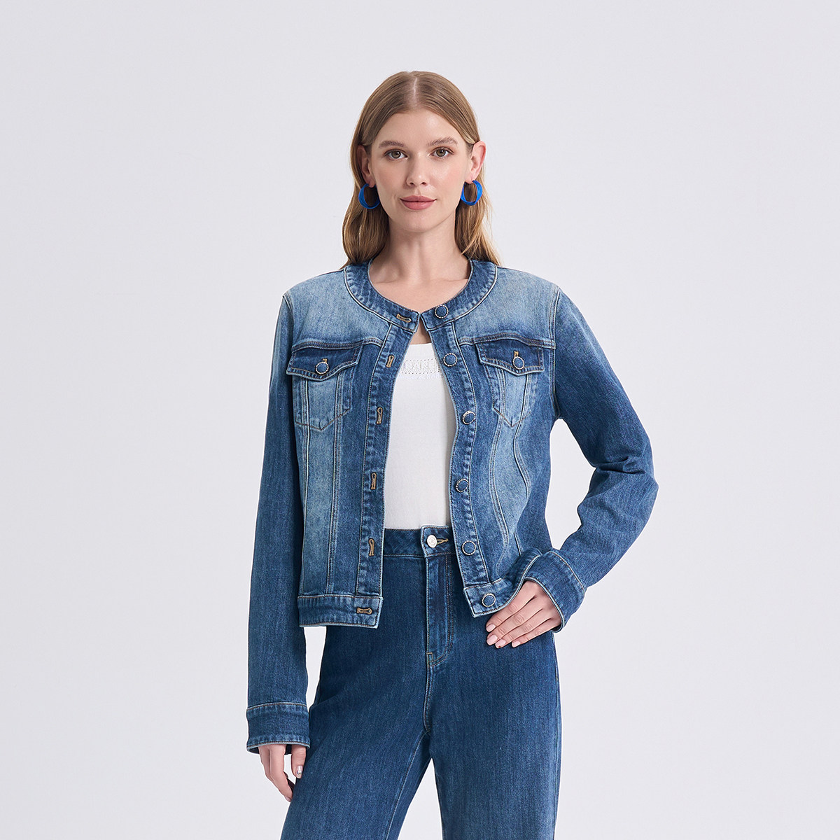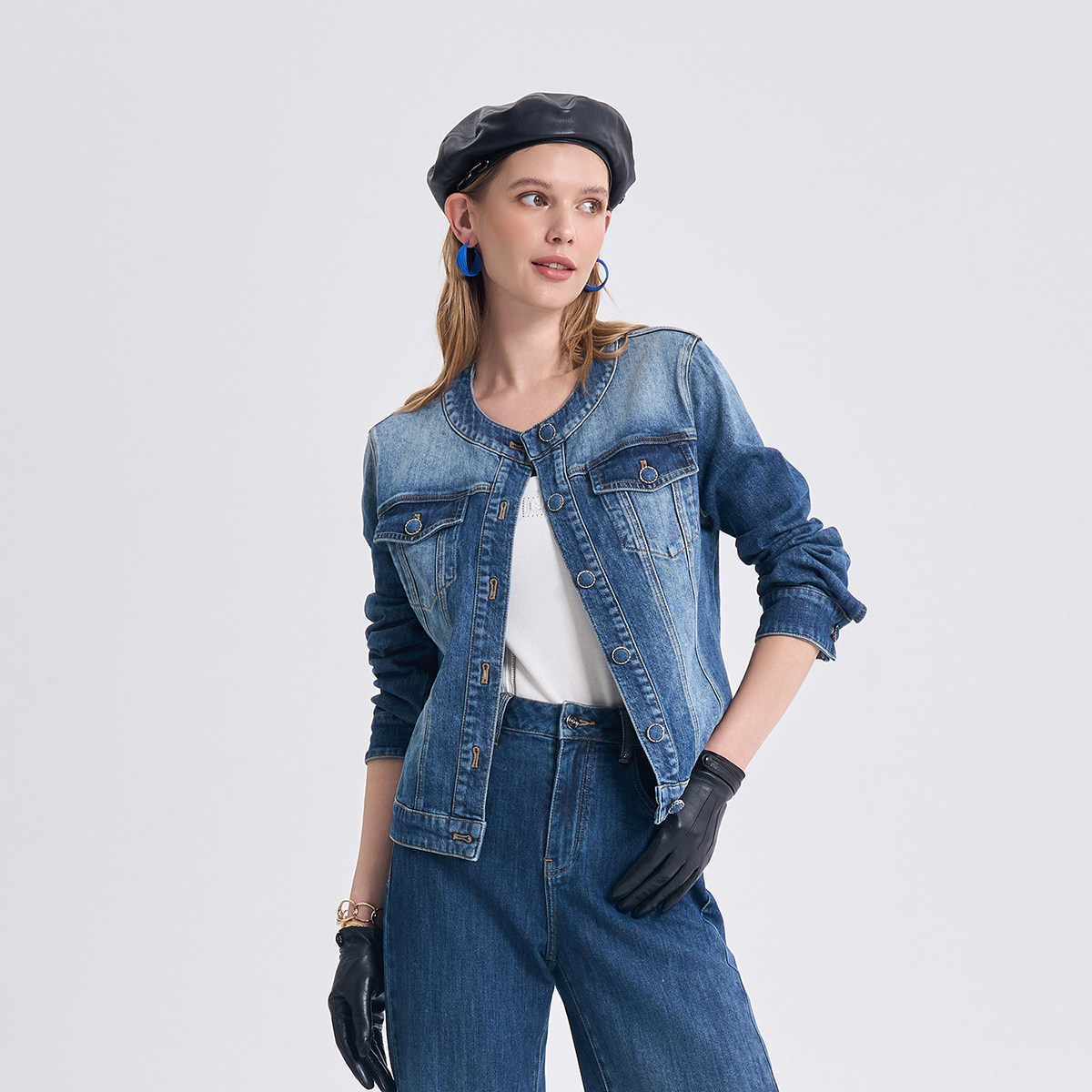 RARE威雅女装2026春夏新款牛仔夹克阔腿牛仔裤女时尚蓝色牛仔套装