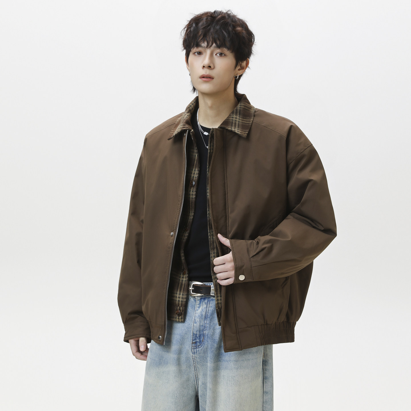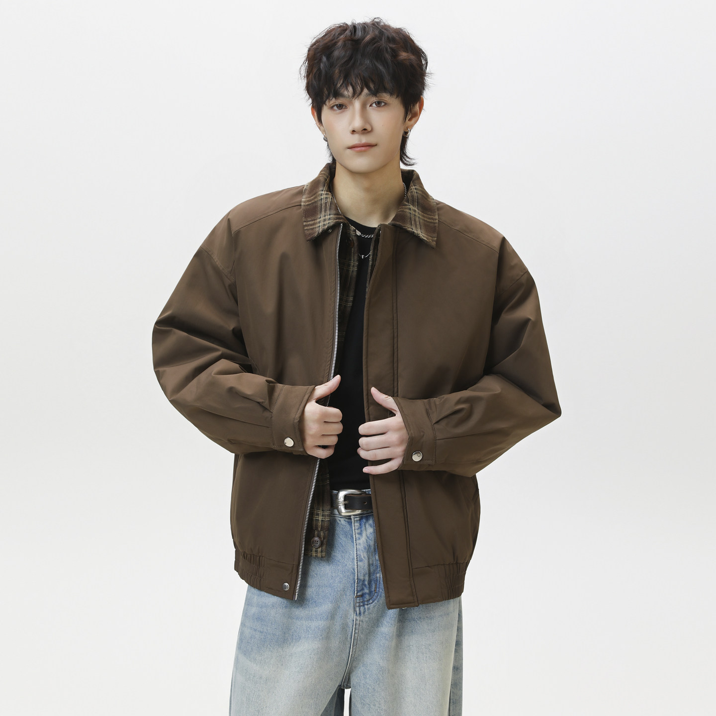 PKL 美式复古夹克上衣翻领拼接巴恩风外套男秋冬假两件情侣衣服潮