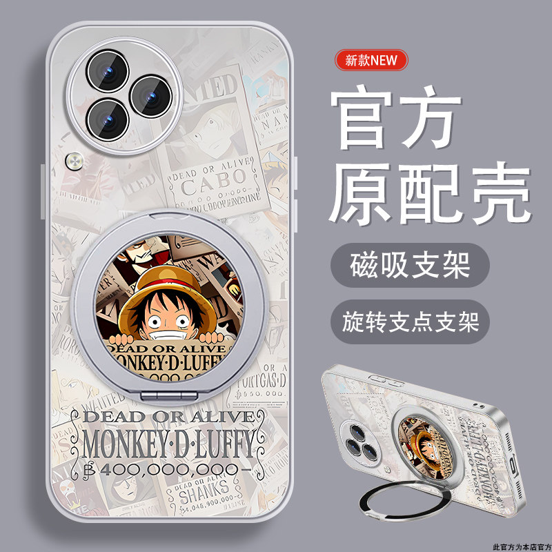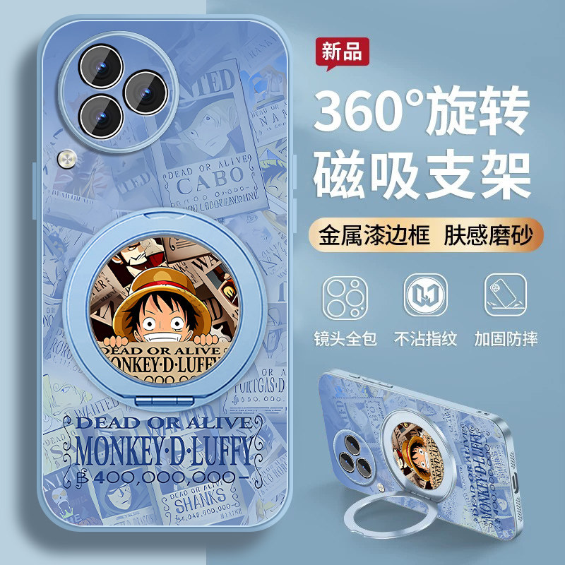 适用红米k80手机壳RedmiK80pro新款小米K80海贼王路飞por旋转支架保护套全包防摔硅胶男创意动漫磁吸支点外壳