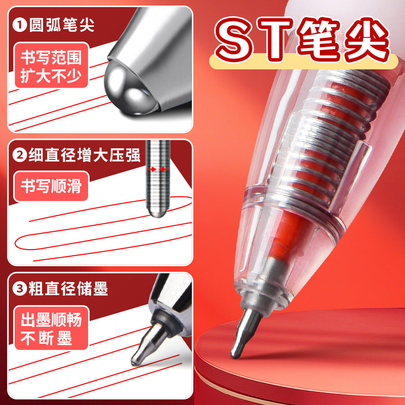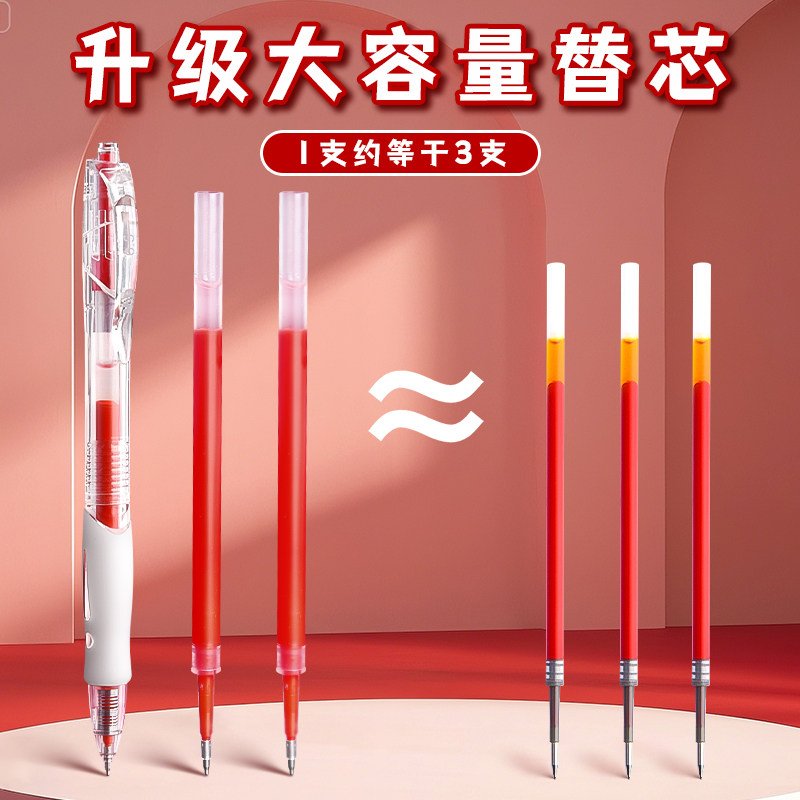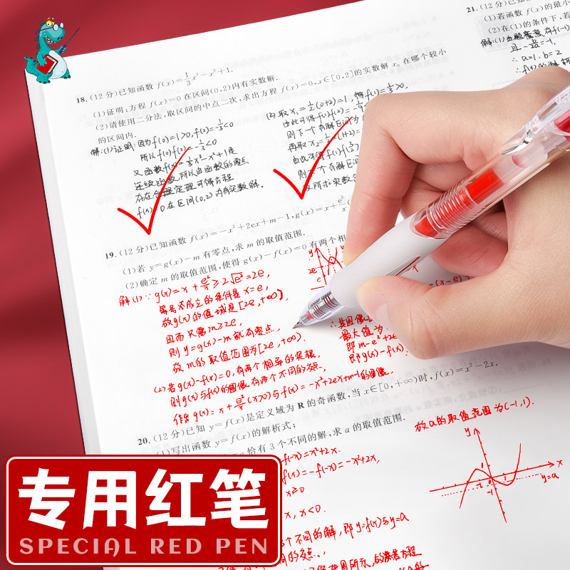 晨光按动中性笔红笔礼盒学生专用高颜值ins风老师批改作业专用0.5st头小学初中生高中生红色笔芯GP1008大容量