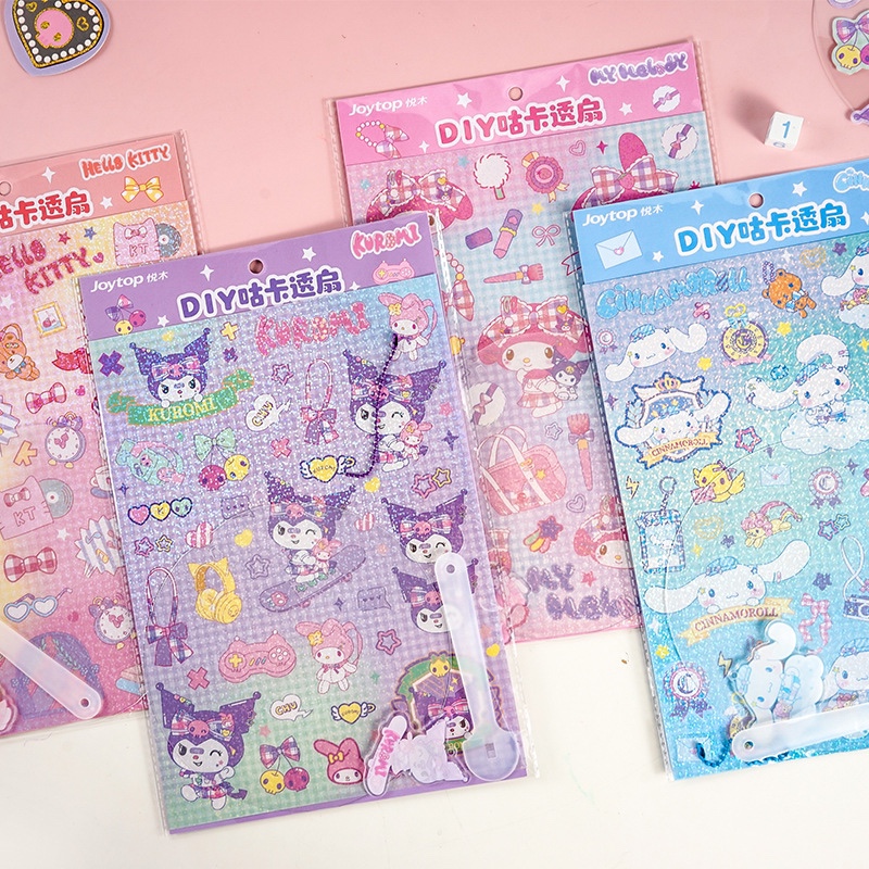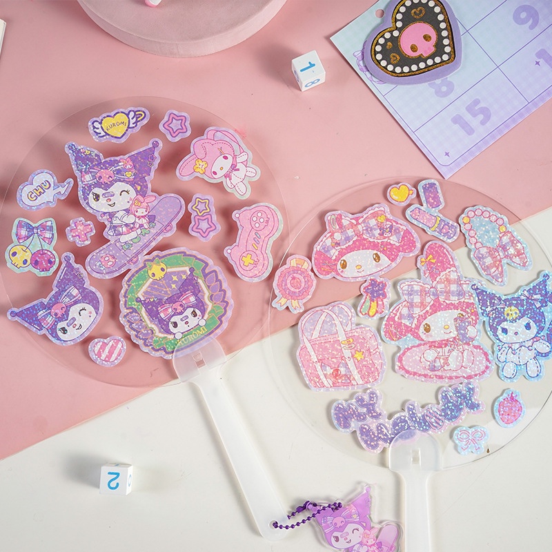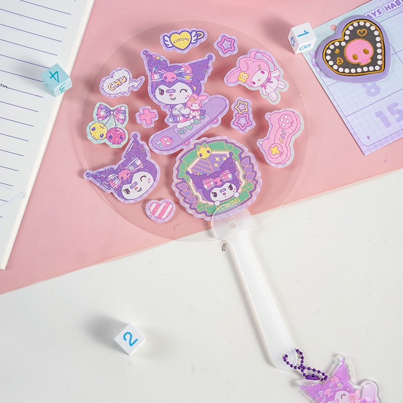 买3送1三丽鸥酷洛米咕卡透明扇子美乐蒂大耳狗手帐贴纸咕卡圆扇子