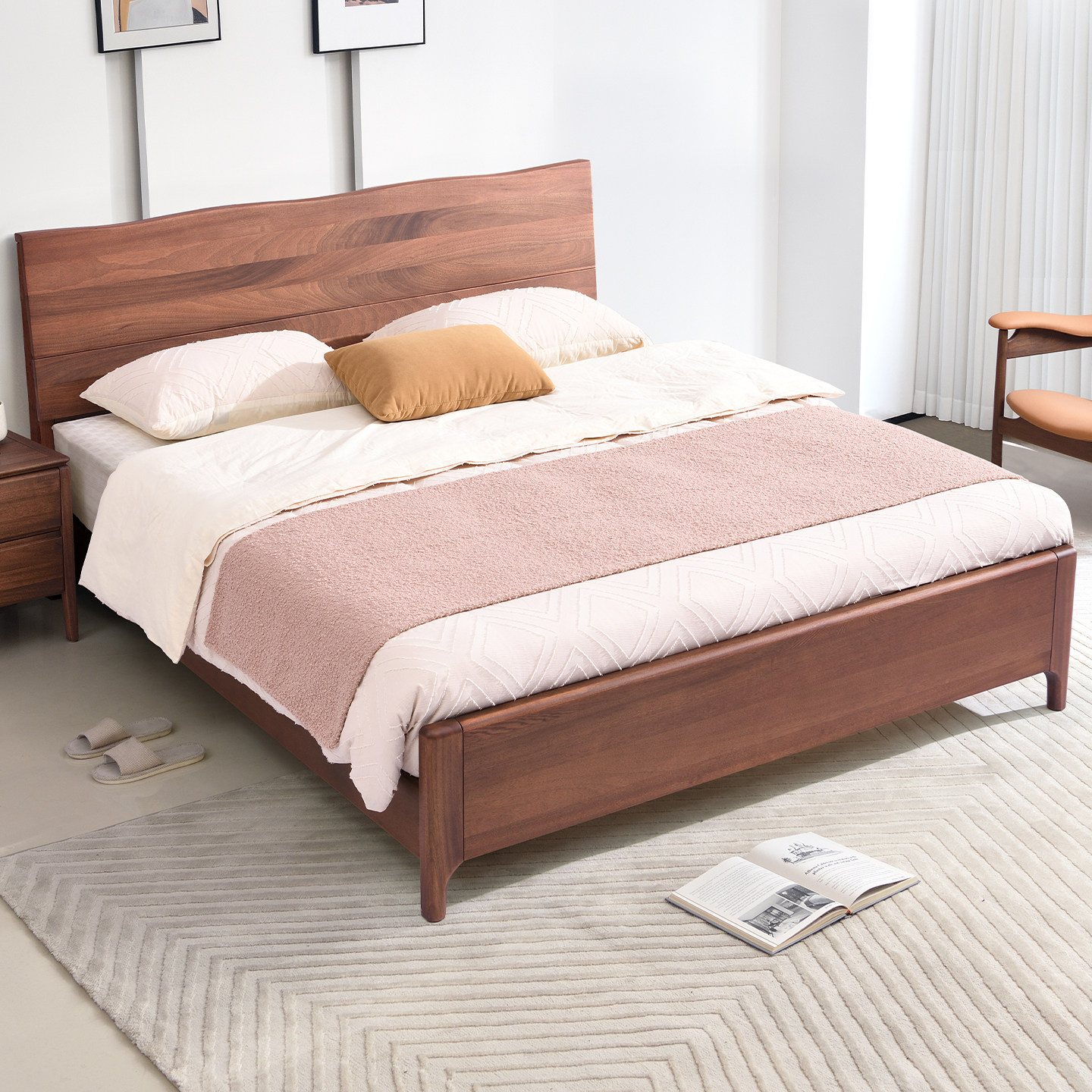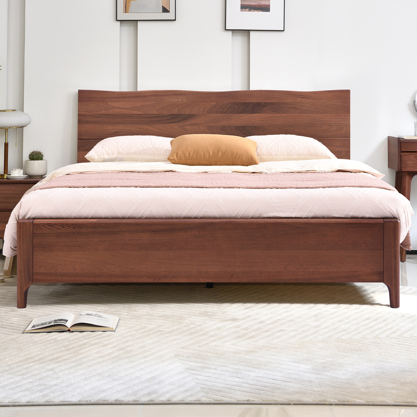 实木床现代简约胡桃木主卧1.5米双人床1.8米主卧轻奢婚房双人床