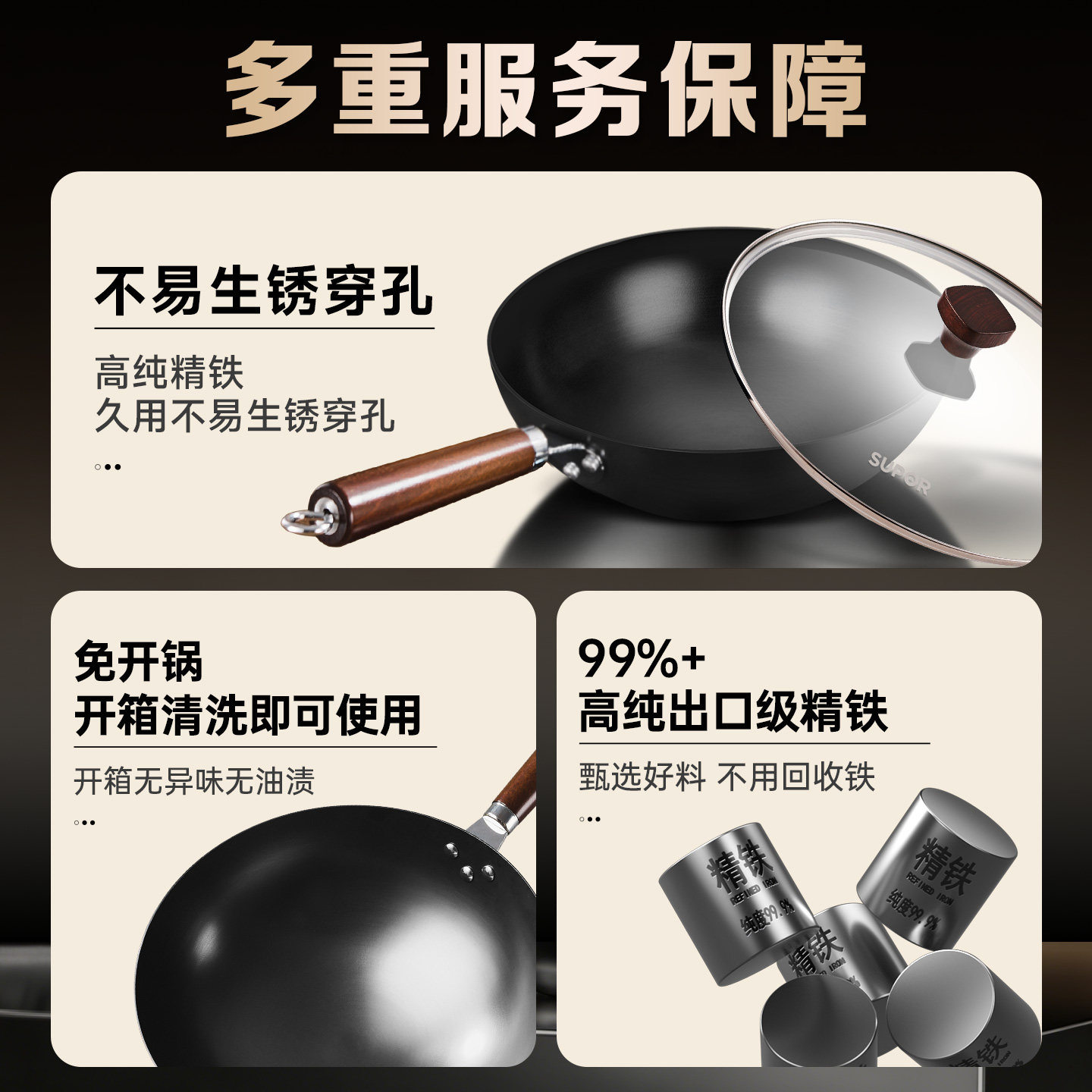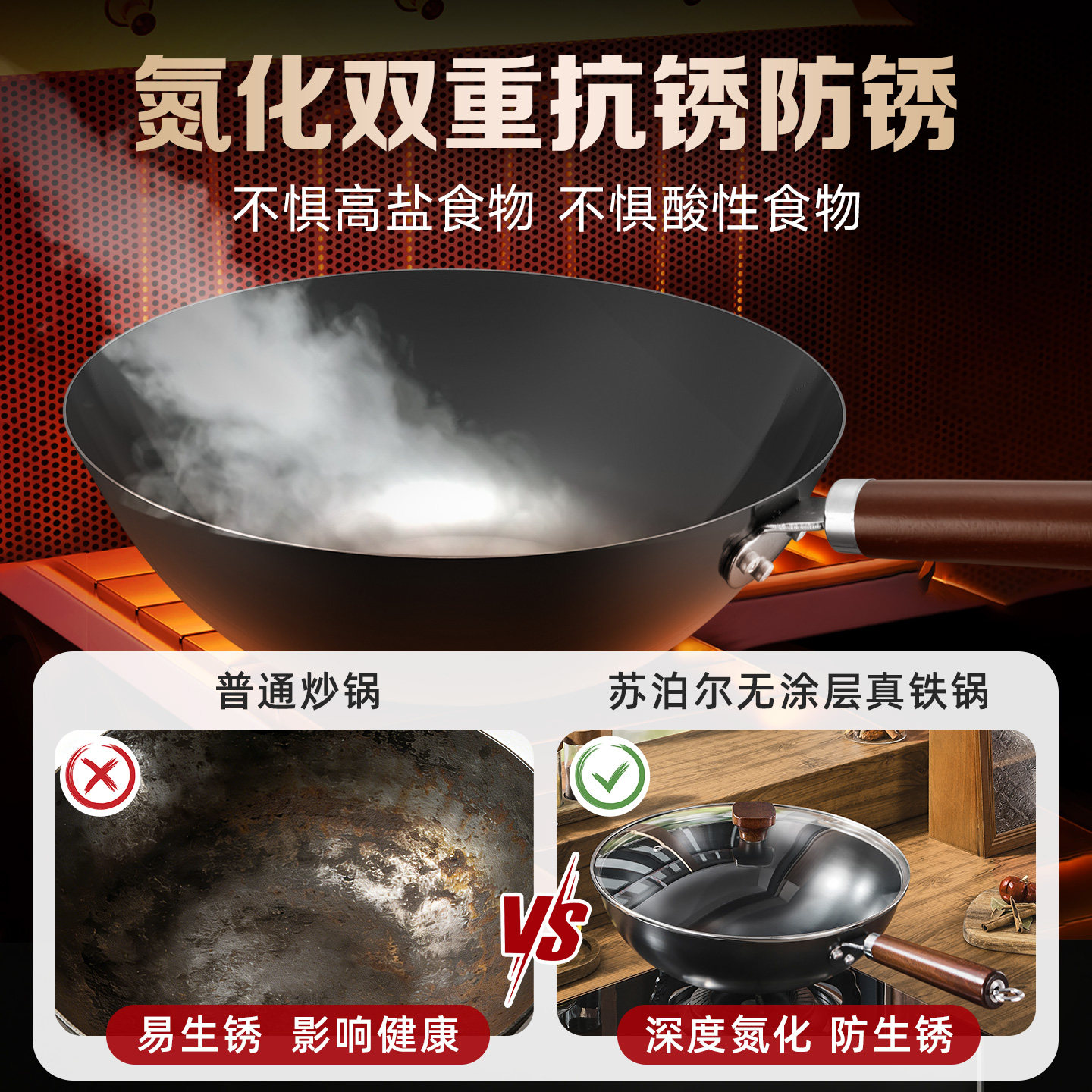 苏泊尔无涂层防锈铁锅炒菜锅家用传统新中式炒锅燃气凹面电磁炉用