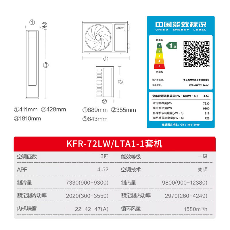 【纯铜管】海尔空调1.5匹1匹家用一级变频冷暖挂机净省电E1旗舰店