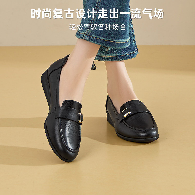 【牛皮】真皮乐福鞋女平底单鞋坡跟女鞋软皮软面妈妈鞋一脚蹬皮鞋