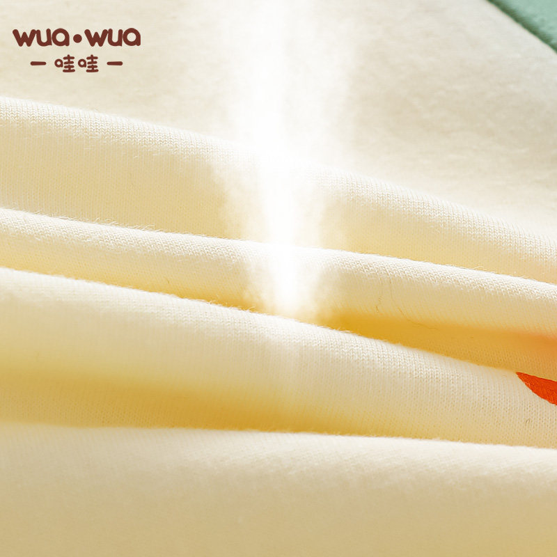 小猪大卫新生儿秋季保暖连体衣男女宝宝卡通印花中开夹棉爬服