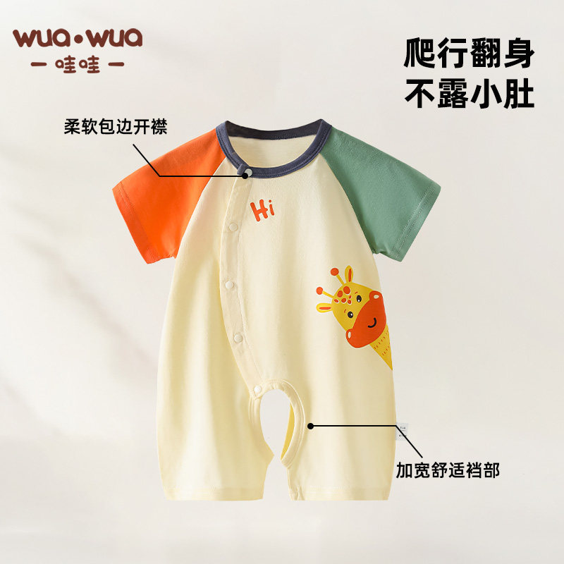 婴儿连体衣夏季短袖开裆纯棉a类小月龄爬服男女宝宝夏装大屁屁裤