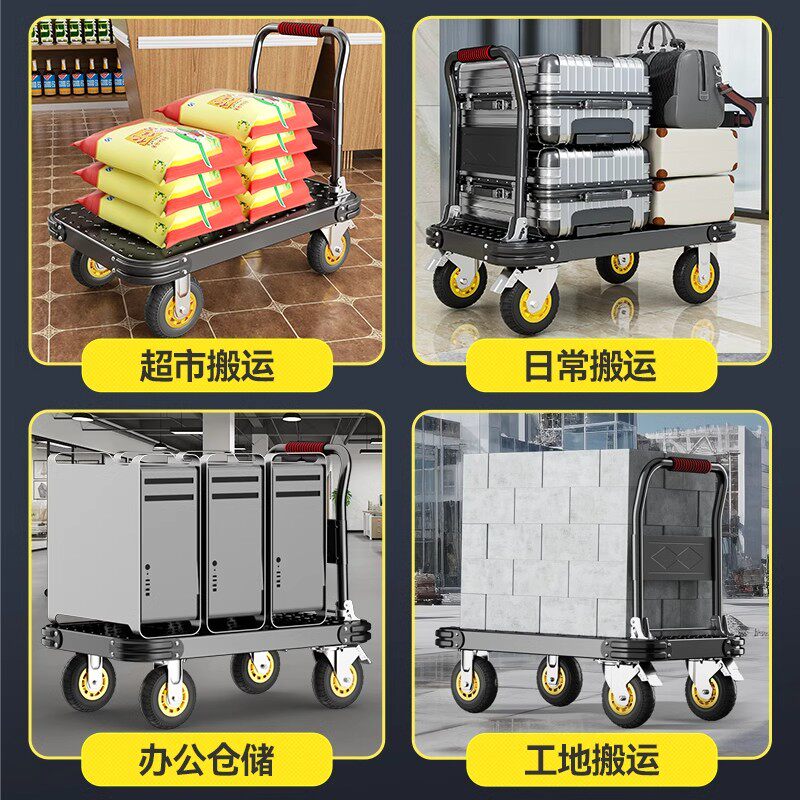 钢板小推车拉货手推车搬运车家用平板车便携拖车折叠小拉车家用