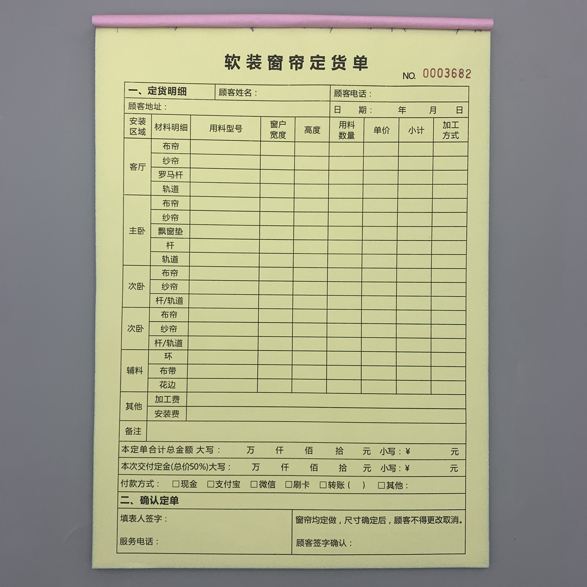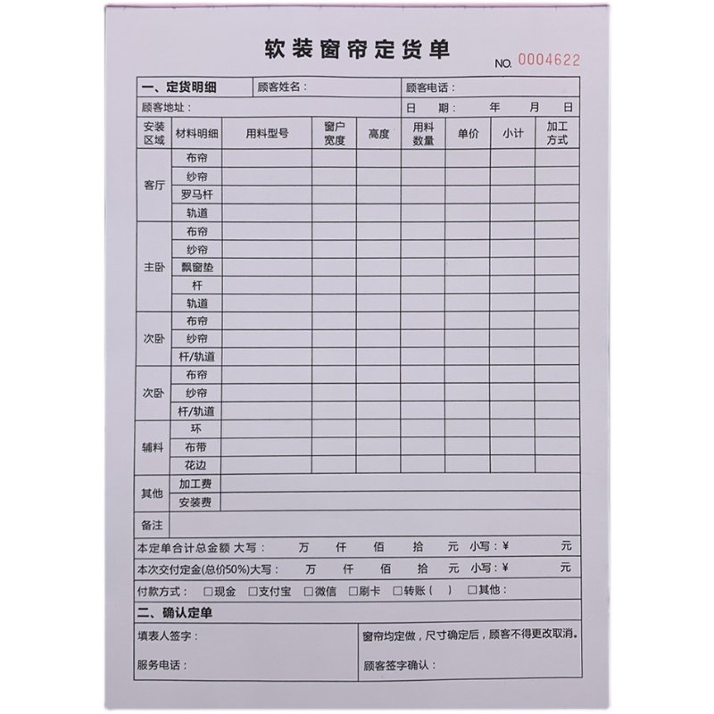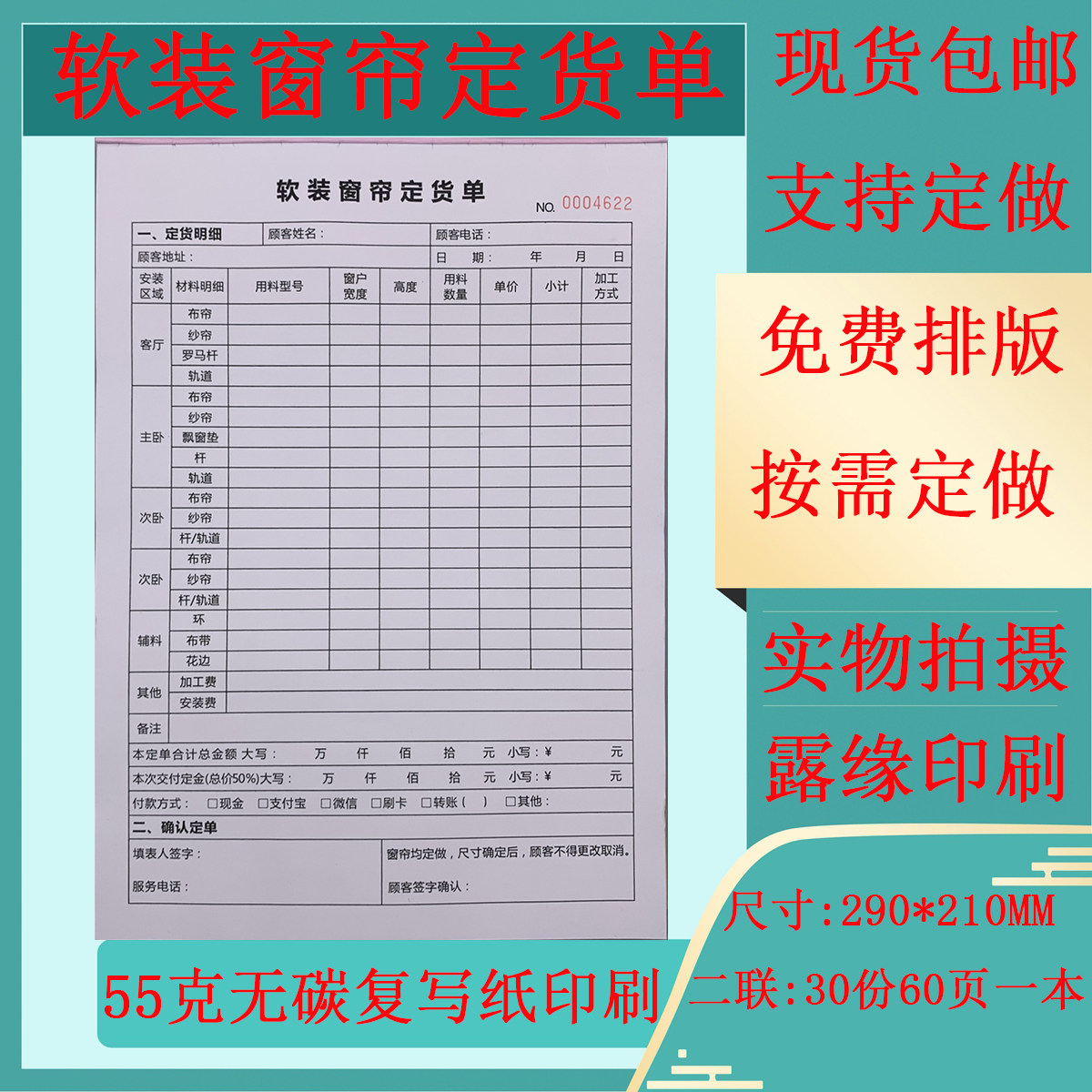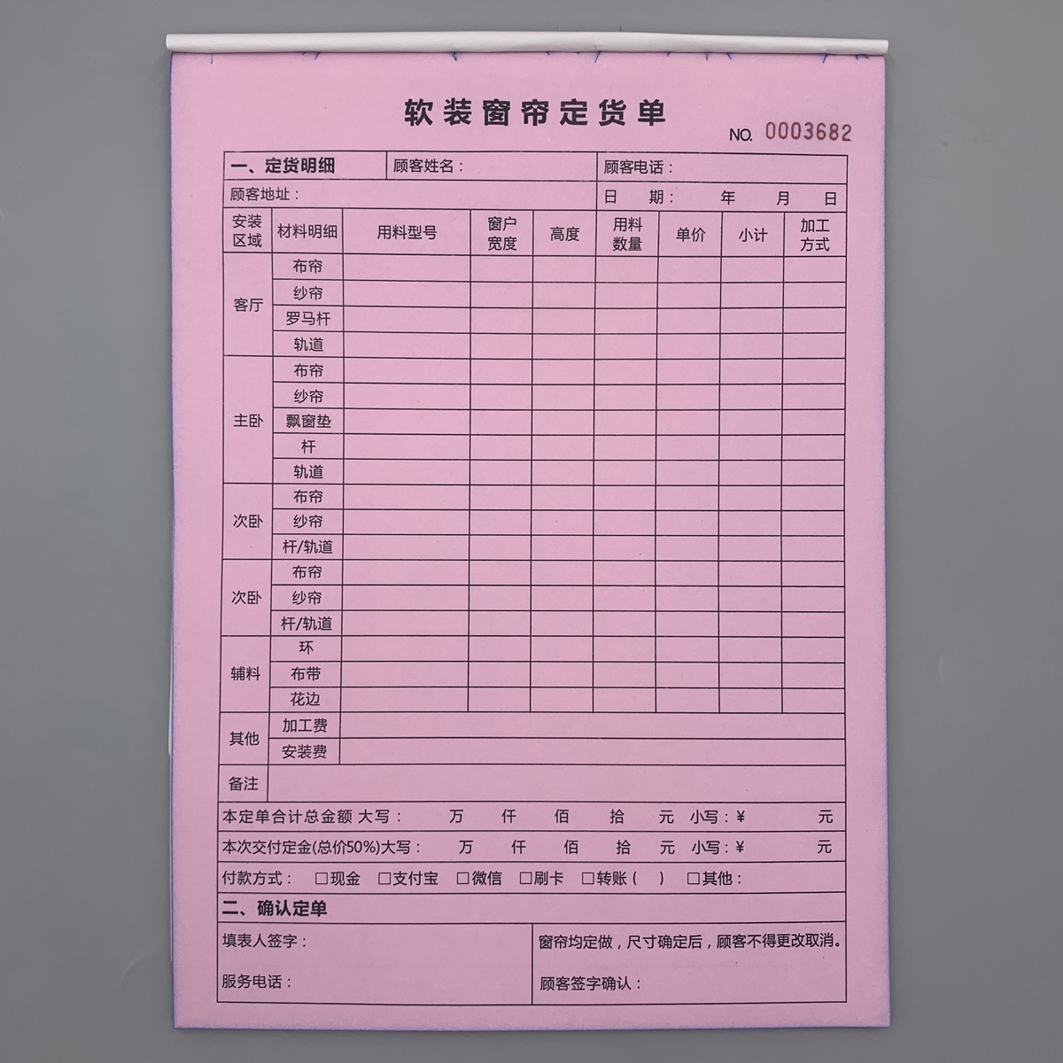 A4软装窗帘定货单门窗尺寸登记表木门窗户订货单家俱销售单可定做