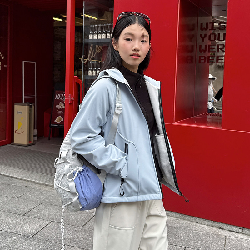 蕉下软壳万粒绒外套女秋冬新款双面穿摇粒绒抓绒内胆防风加绒外套