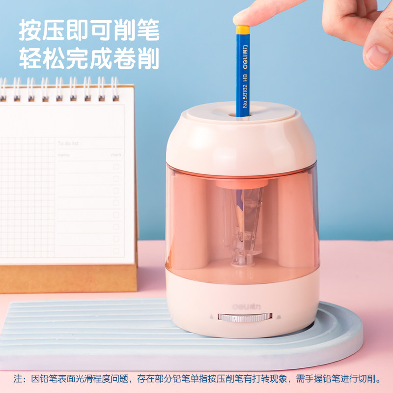 得力自动削笔机转笔刀小学生专用电动削笔器幼儿园儿童卷笔刀双电源大口径多档调节削笔刀女孩铅笔刨笔绞笔刀