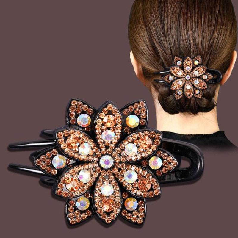 夹子头饰发夹女新后脑勺盘发大号头发抓夹发卡妈妈高端鸭嘴夹镶钻