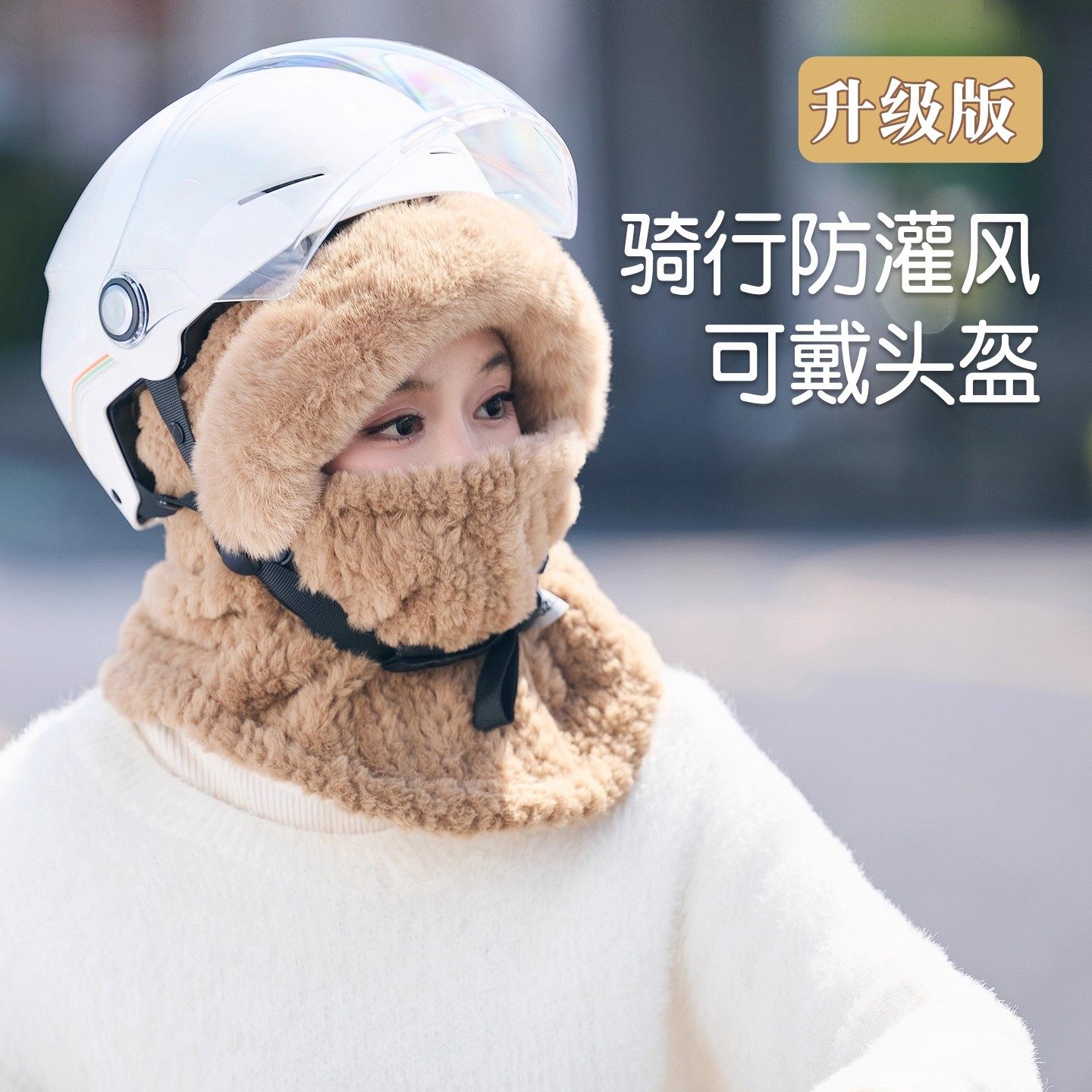 冬天防寒帽子围巾一体面罩女雷锋帽骑车保暖防风围脖电动车冬骑行