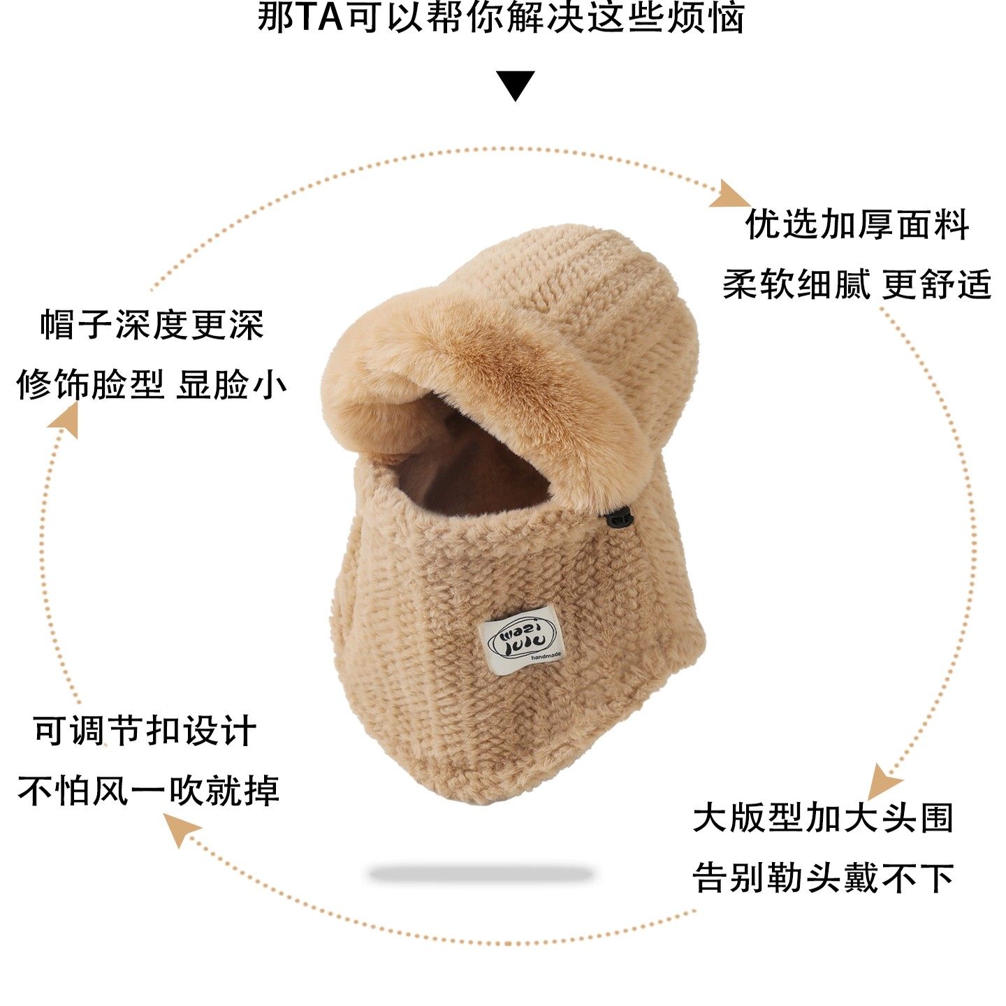 围巾帽子手套一体女连帽冬季帽可爱保暖围脖毛绒冬天三件套厚防寒