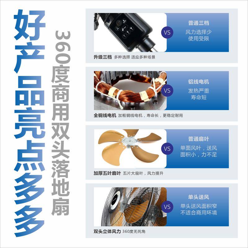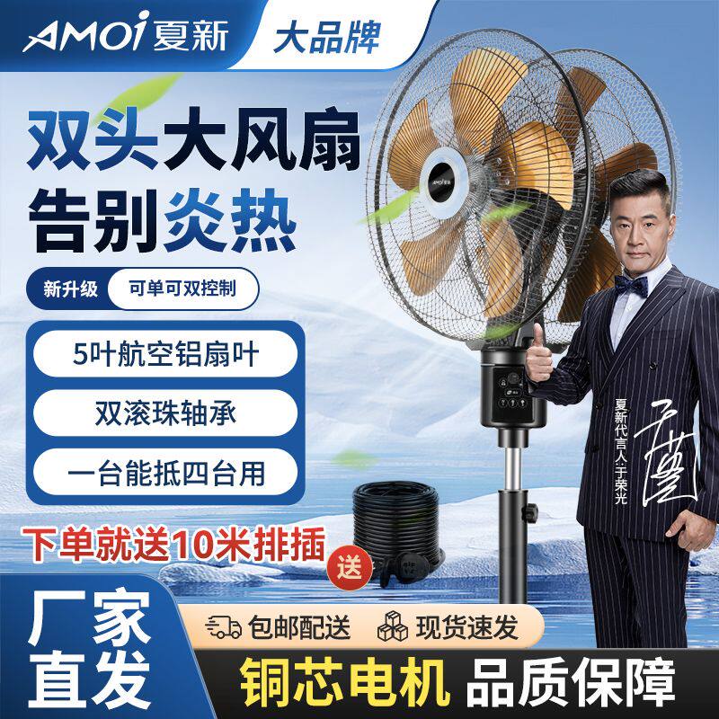 夏新商用双头电风扇大风力360度旋转大排档饭店工业双面落地风扇