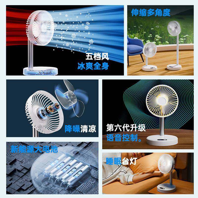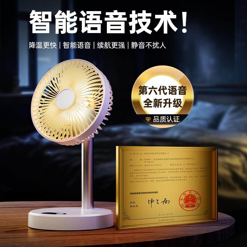 新款语音风扇学生家用迷你电风扇桌面台扇办公室静音小型充电台扇
