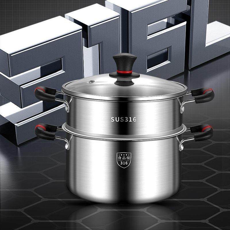九阳蒸锅家用德国316不锈钢特厚双层汤锅食品级三层蒸汽锅煤气灶