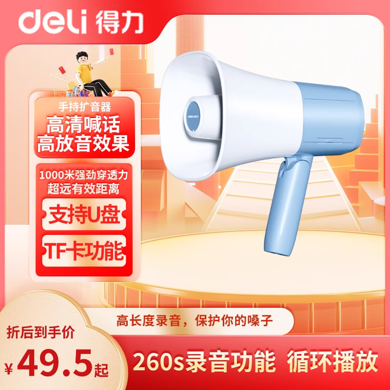 得力录音喇叭扬声器充电扩音器户外摆摊叫卖宣传无线喊话扩音器