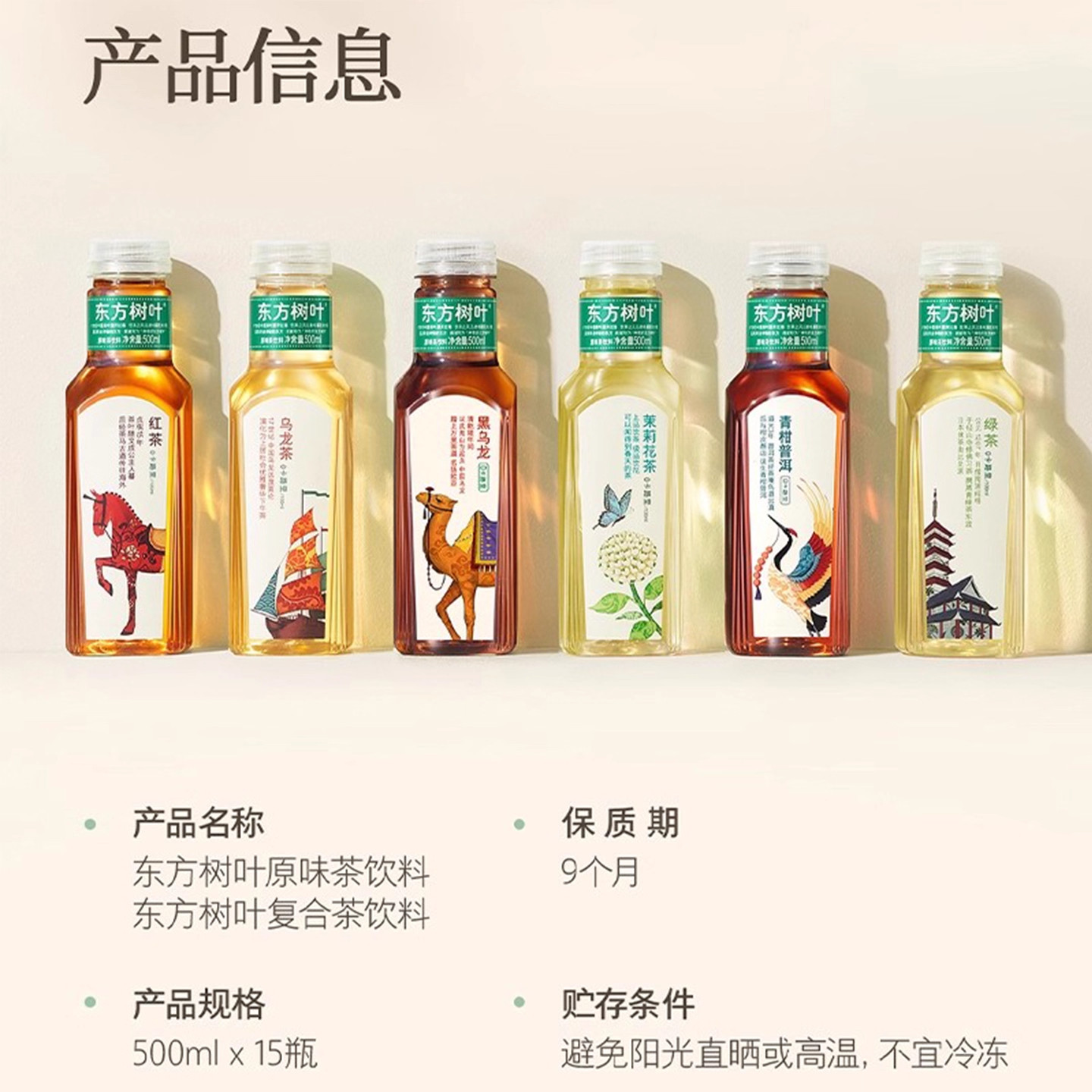 农夫山泉东方树叶茉莉花茶/青柑0糖无糖茶饮料500ml*15瓶整箱绿茶