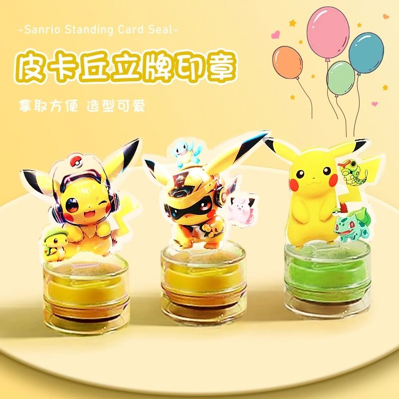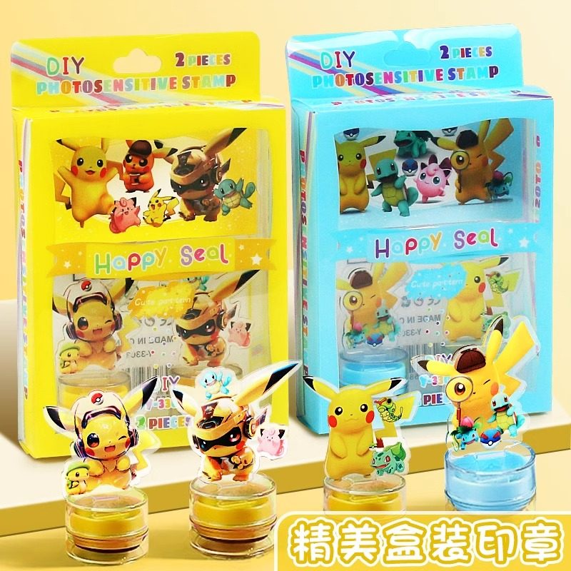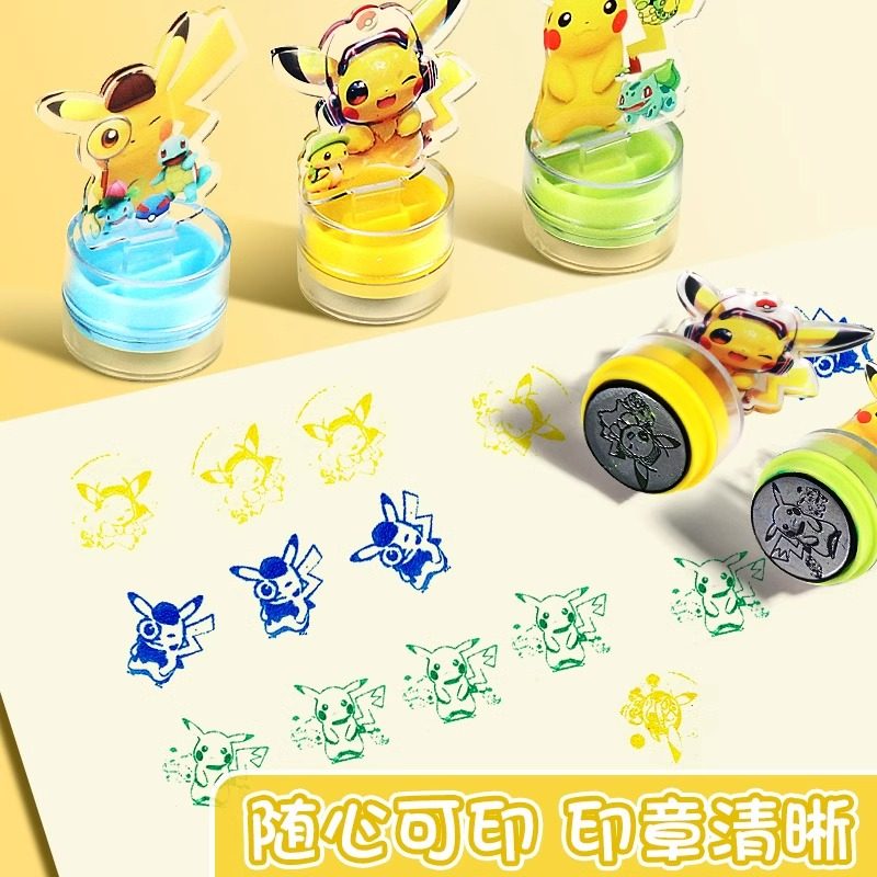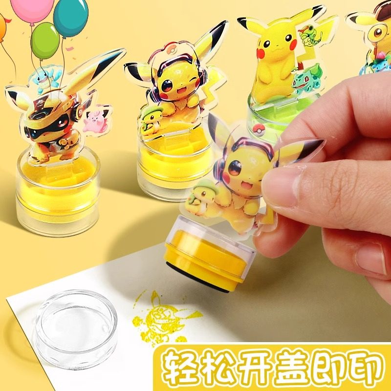 宝可梦印章儿童卡通亚克力摆件盖章奖励可爱卡通皮卡丘手账图案鼓励可水洗彩色教师鼓励玩具幼儿园奖品礼物