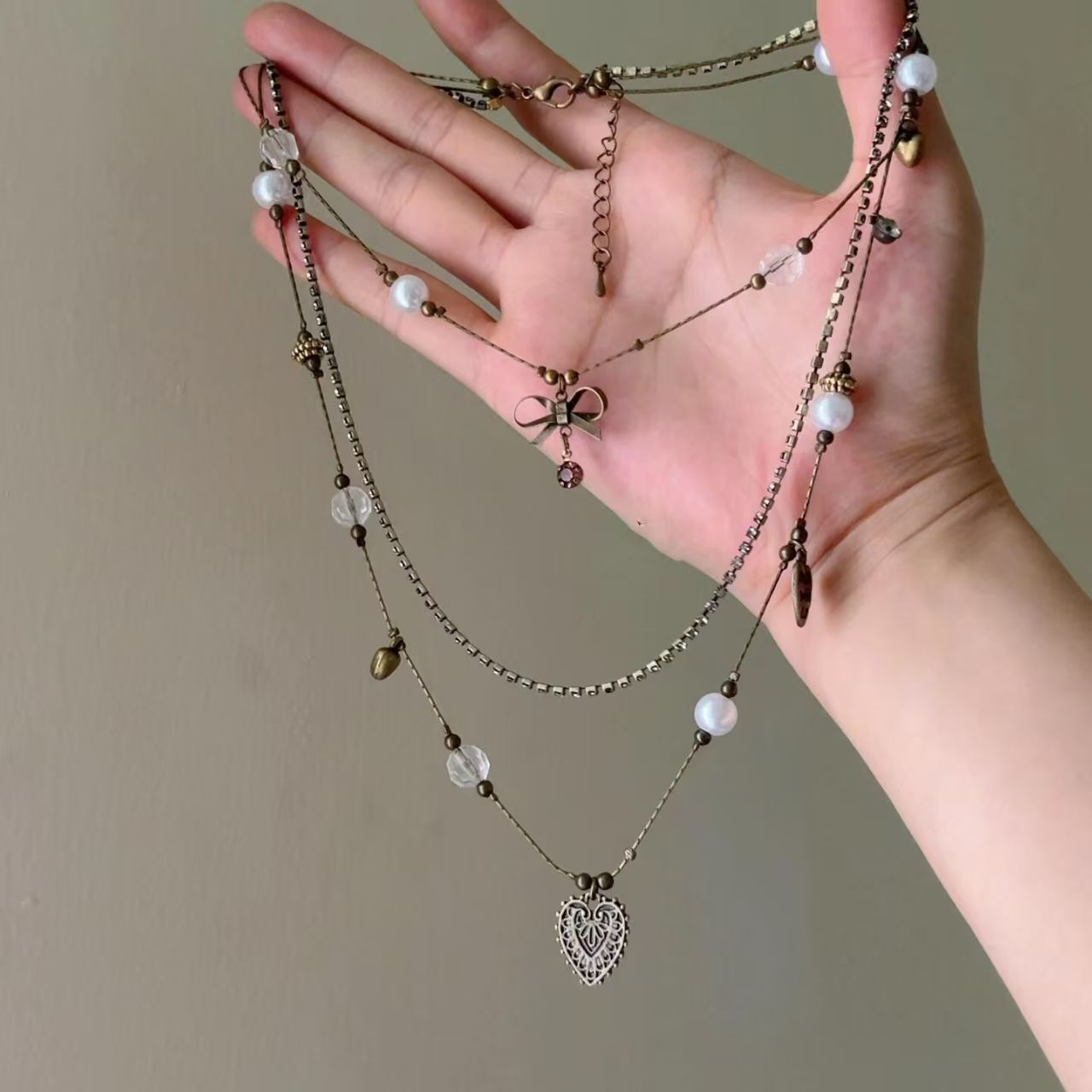 中古vintage爱心项链新款2024爆款复古古着锁骨链女高级感颈链潮