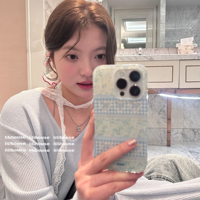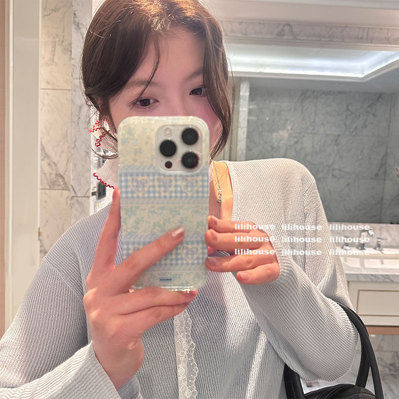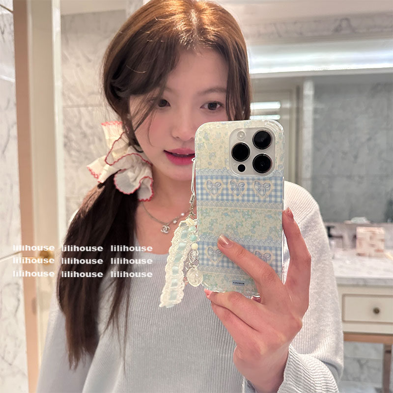 lilihouse清新ins少女软糯奶蓝色碎花蝴蝶结15适用17pro苹果17ProMax手机壳iPhone16全包17新款14Pro保护套韩