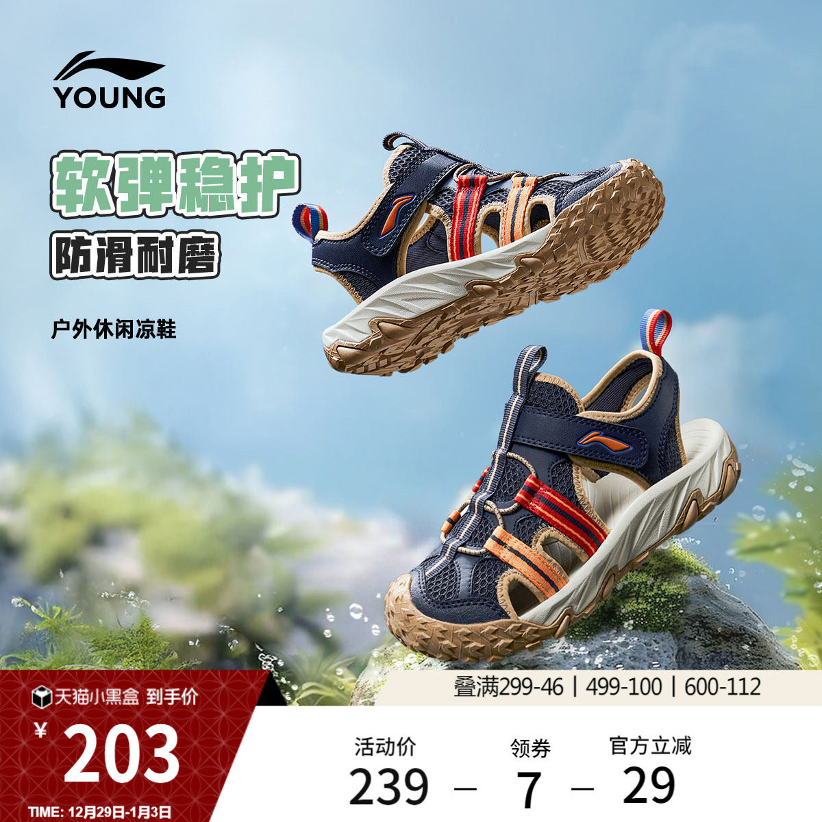 李宁童鞋凉鞋男女小童2025新款减震回弹圆头鞋子夏季透气低帮童鞋