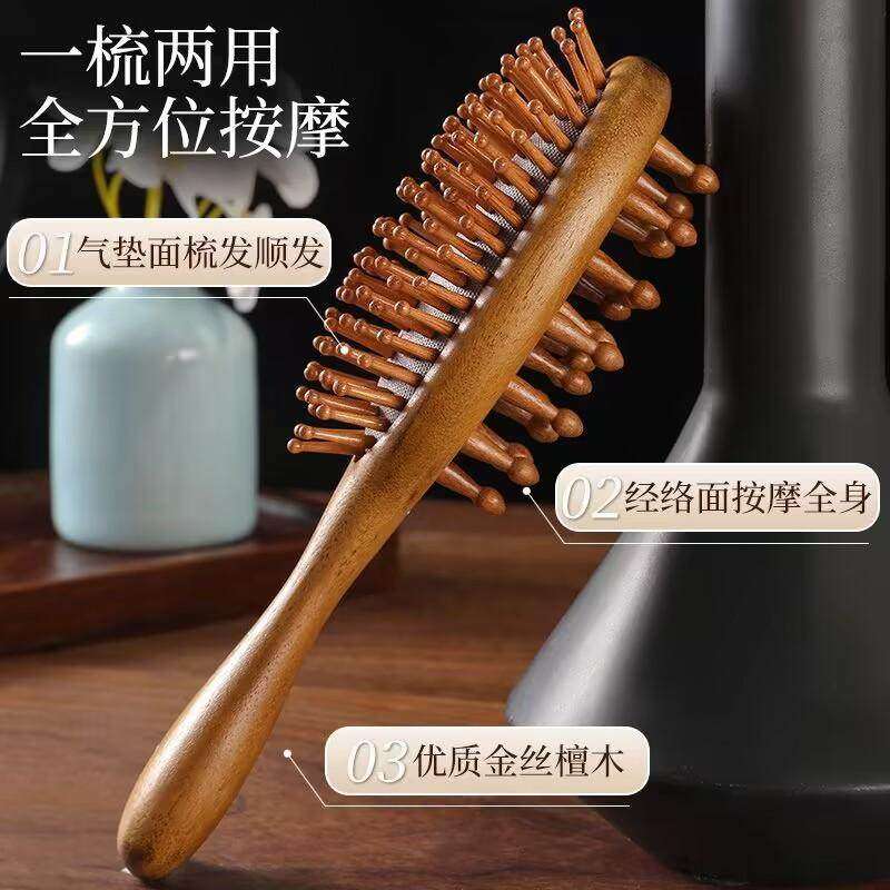 檀木双面经络气垫梳子气囊梳按摩实木头部木梳檀木家用男女士专
