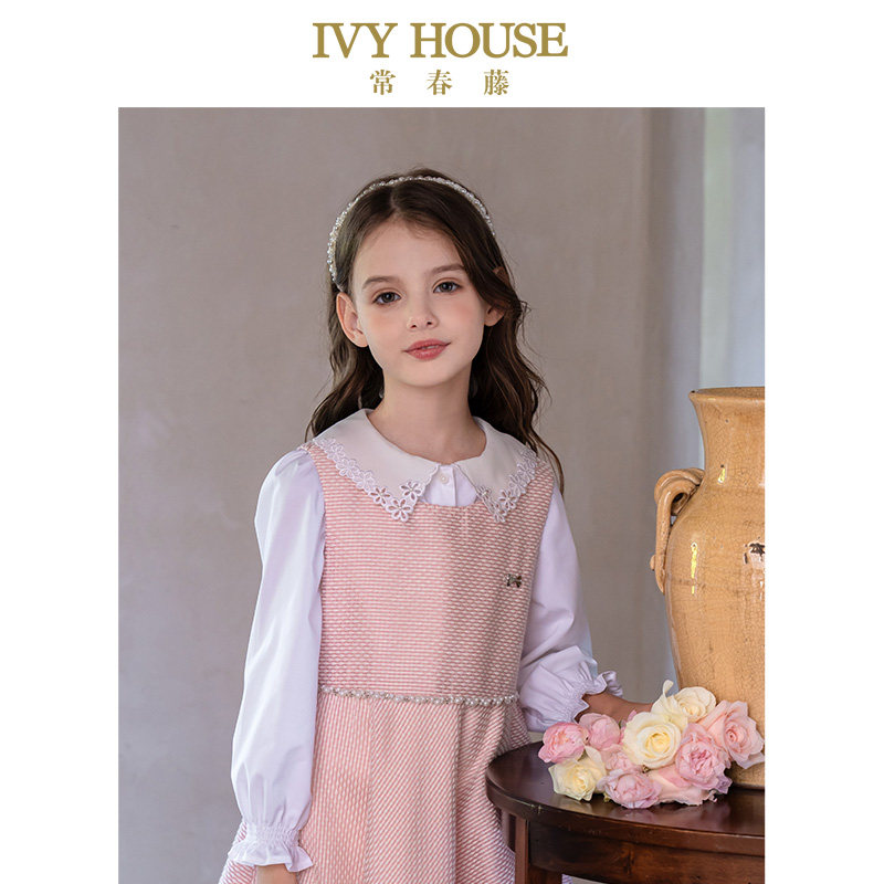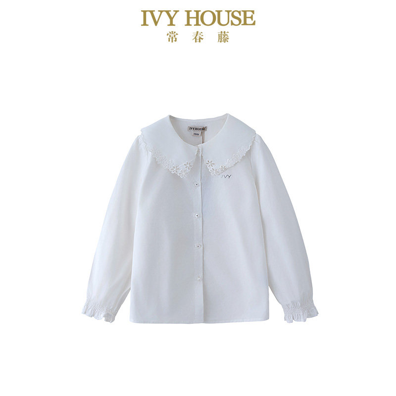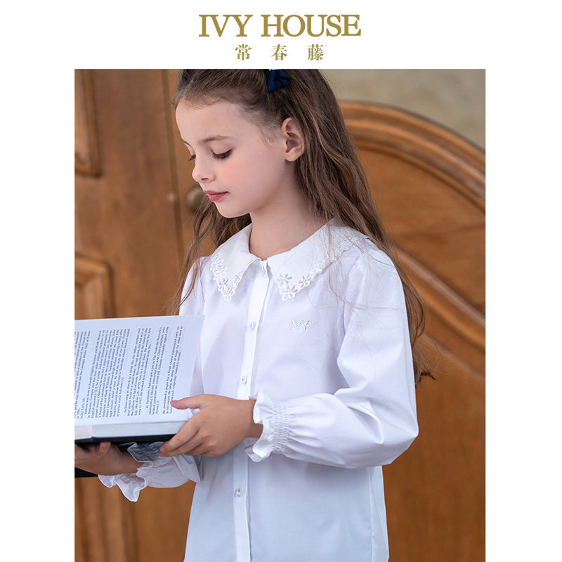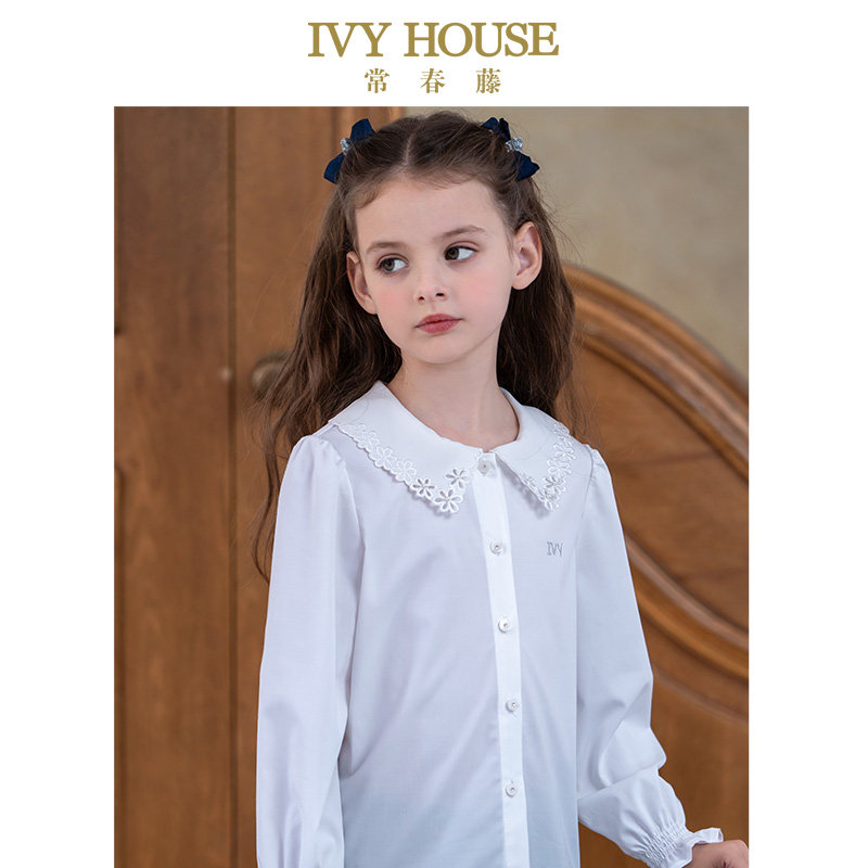 IVY HOUSE常春藤儿童装女童2025秋季新款 长袖白衬衫绣花领棉亲子